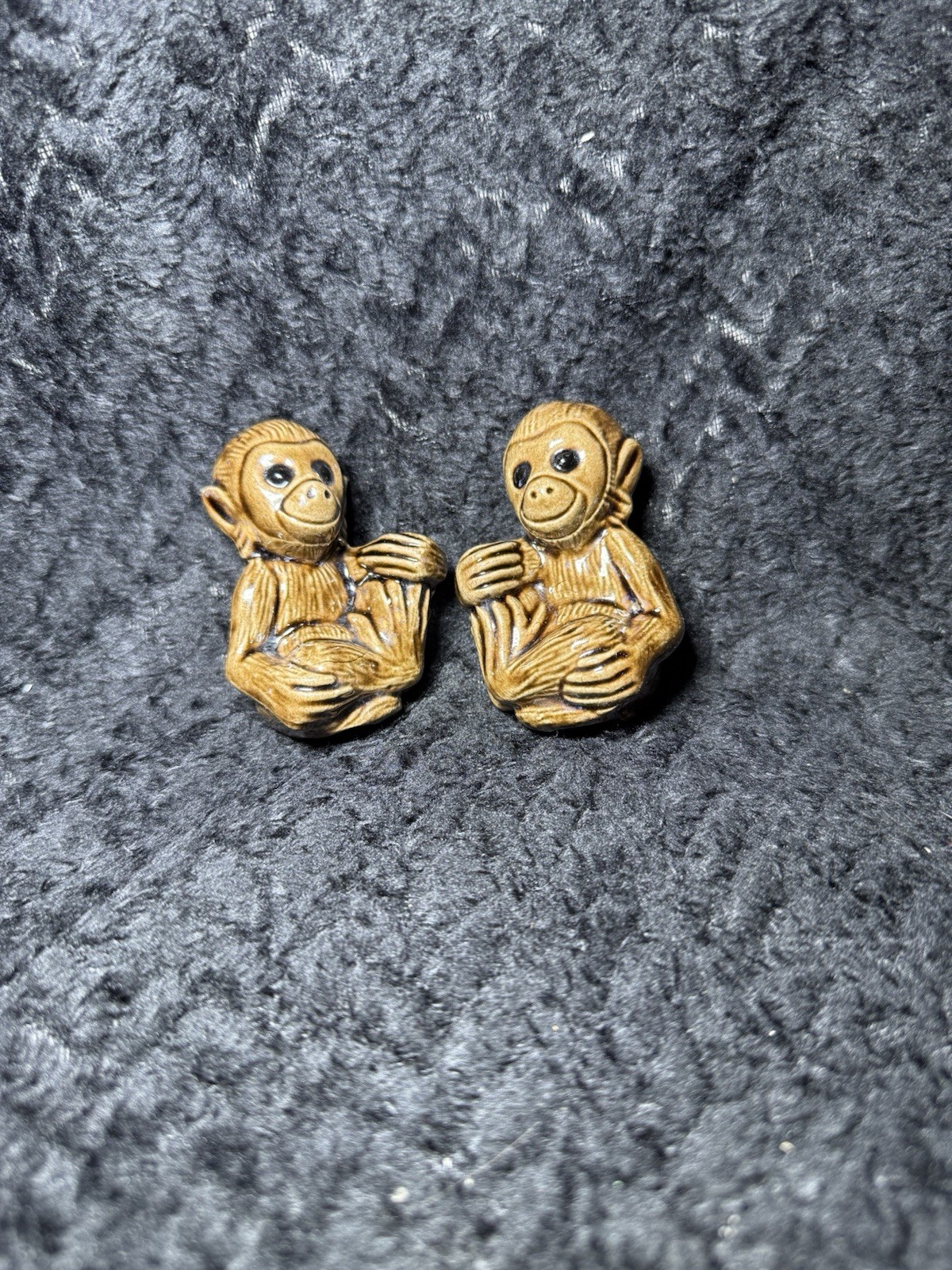 2 Vintage Ceramic Macrame Monkeys Beads 3 inches tall.
