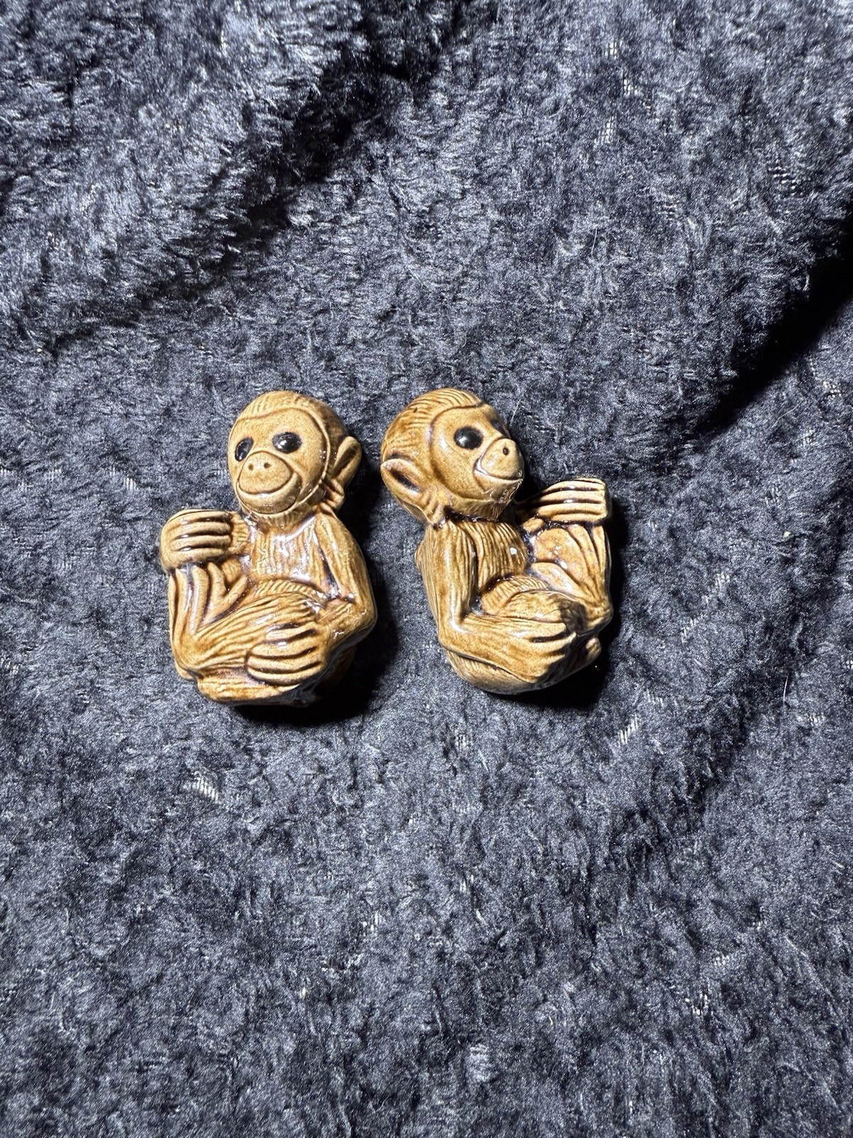 как выглядит 2 Vintage Ceramic Macrame Monkeys Beads 3 inches tall. фото