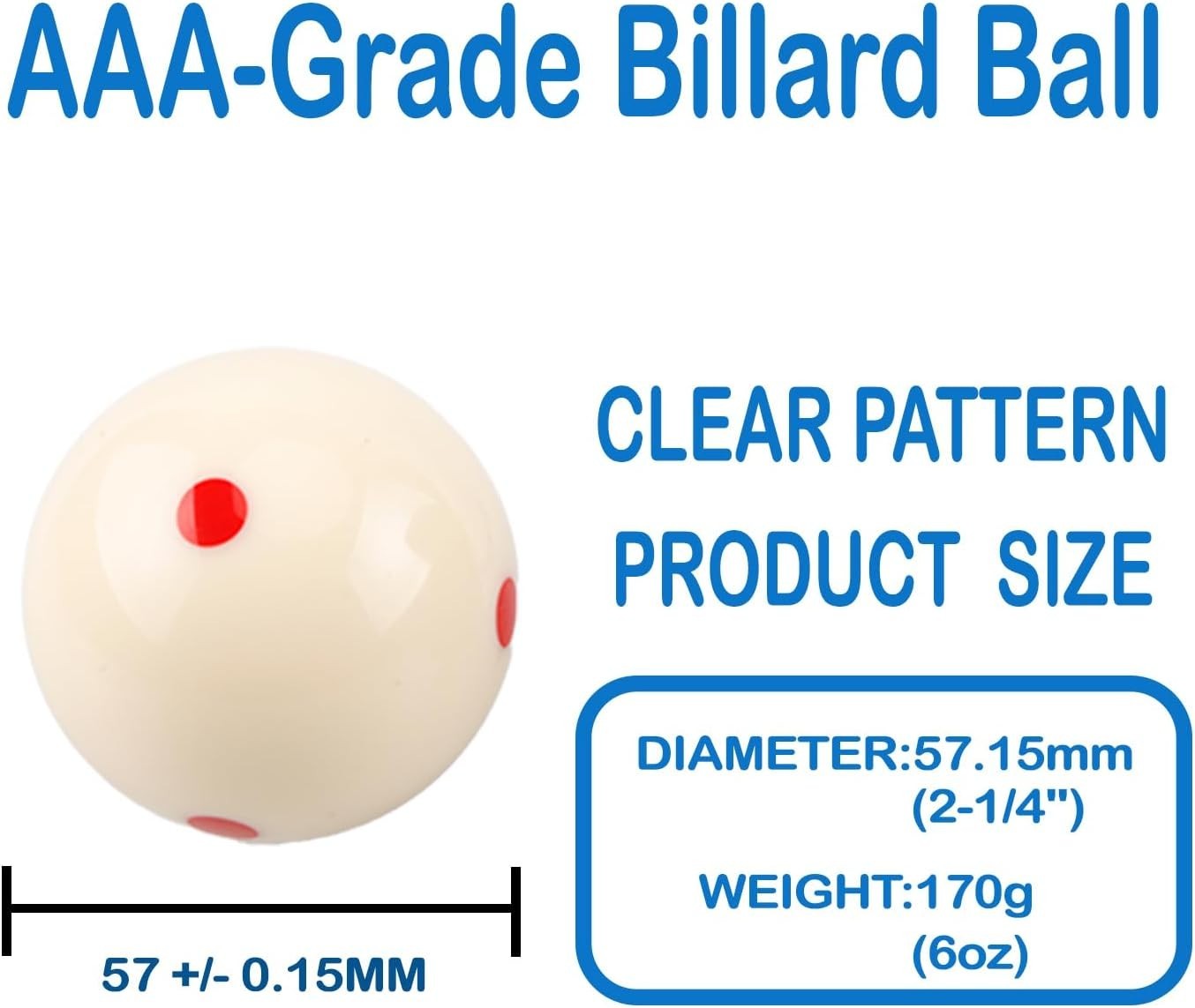 2-1/4 Replacement White Pool BallWhite Cue BallBlue 6 Dot AAA-Grade Billard ...
