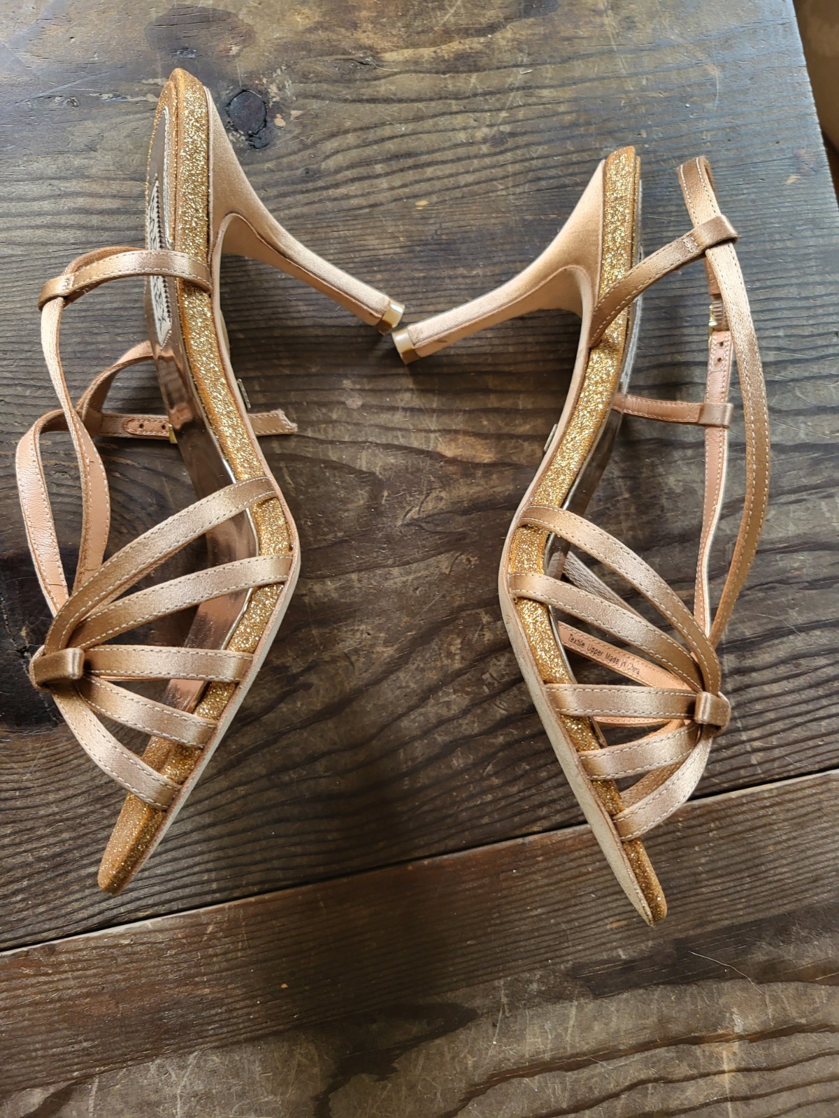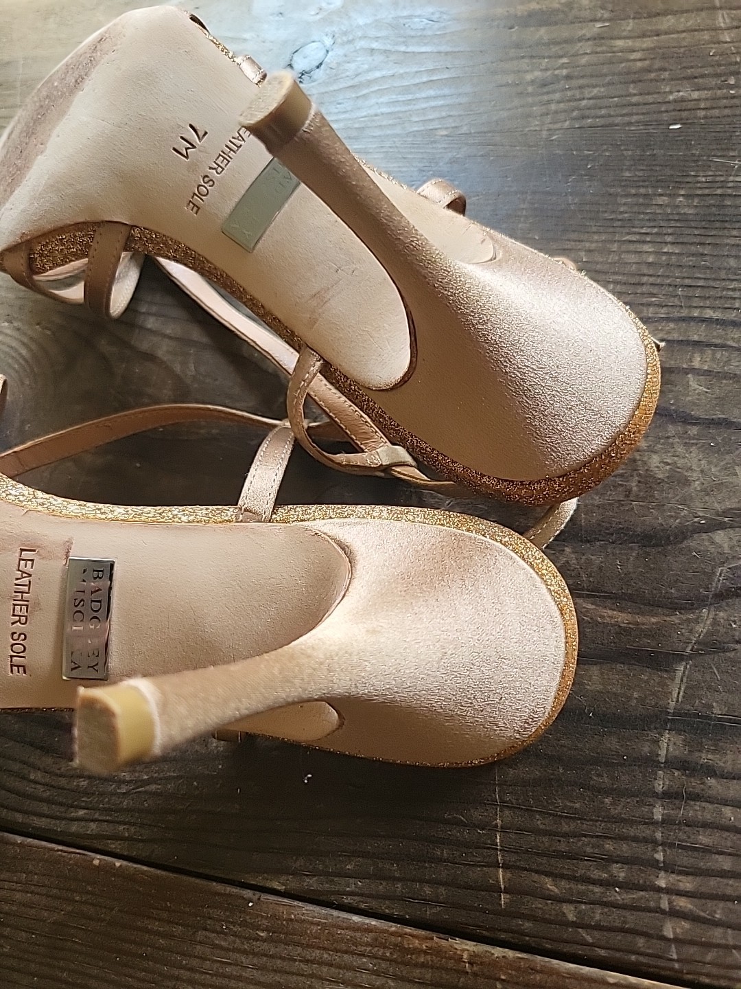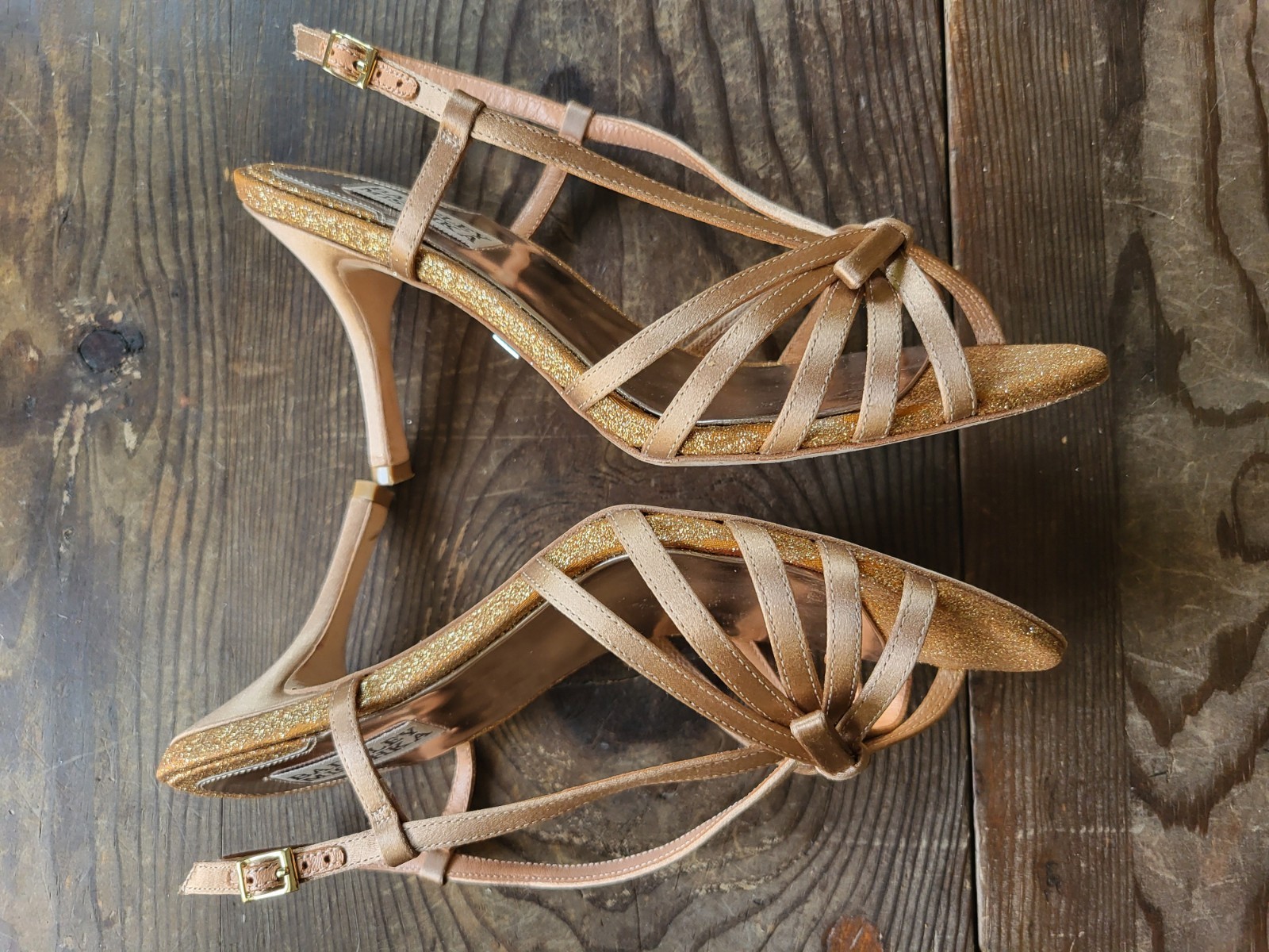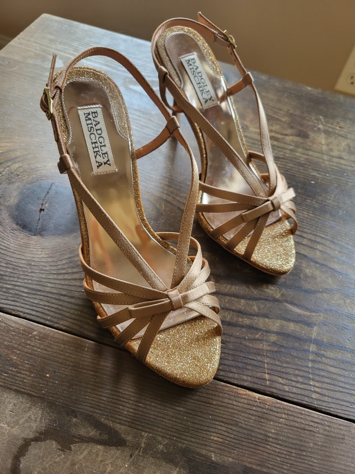 Badgley Mischka Shoes Women Size 7M Gold Glitter Heels Dress Cocktail Wright