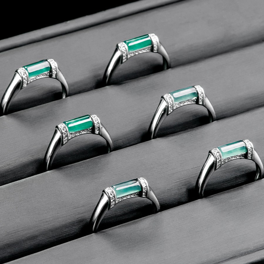 как выглядит Certified Green Natural Rectangle Grade A Jade jadeite 925 Silver Inlay Ring фото