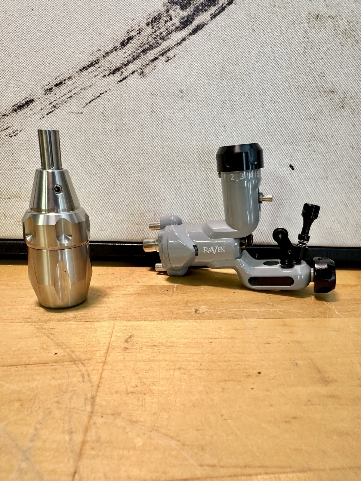 как выглядит Raven Black Grey Rotary Tattoo Machine One Touch Hit Adjuster 8v Motor фото