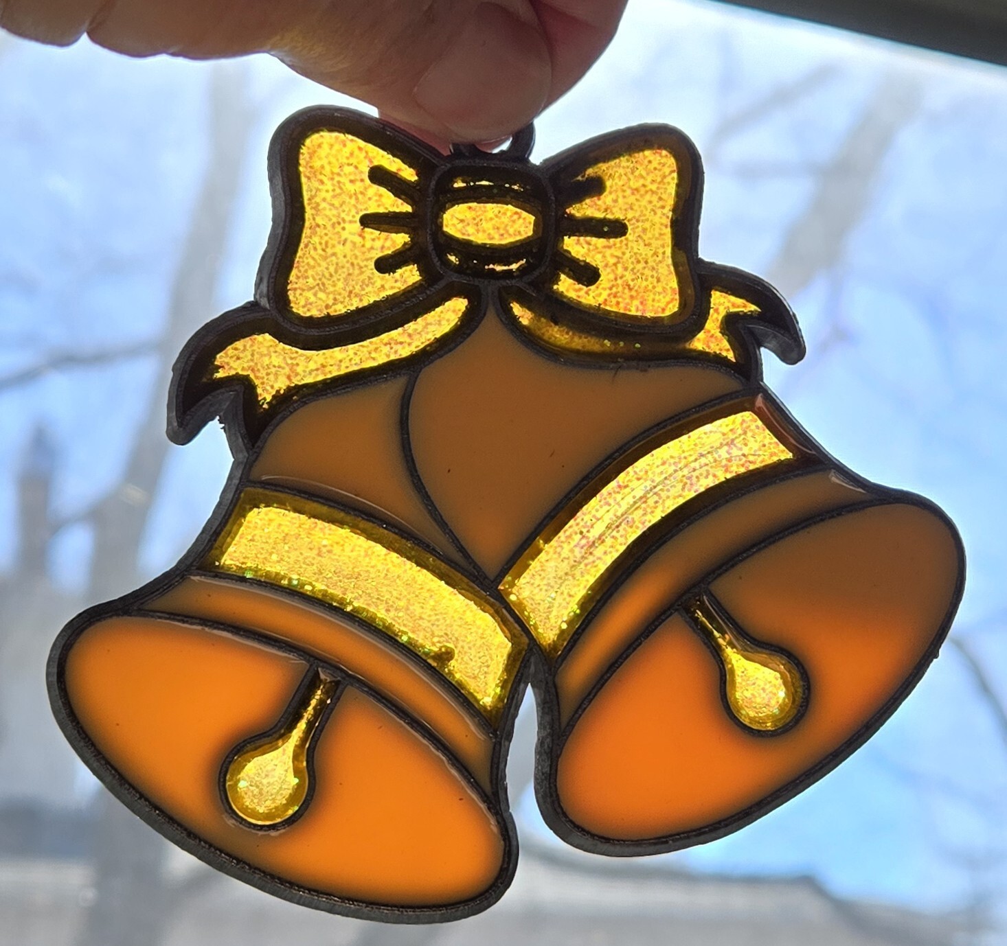 Stained Glass Style Christmas Bells Suncatcher Ornament Set Of 4