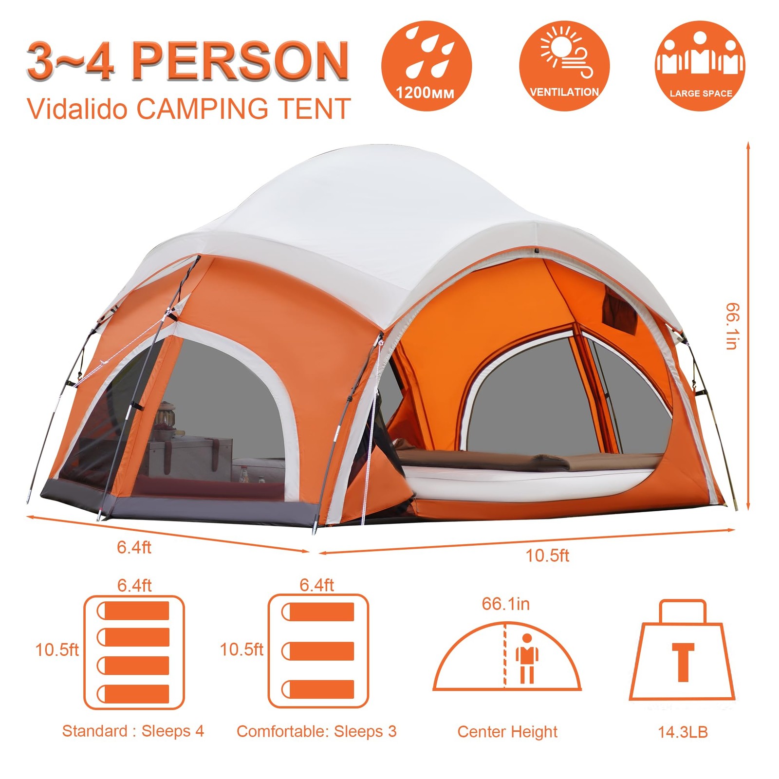 3-4 Person Camping Tent with 2 Large Mesh Door 4 Mesh Window Family Tents, Do...
