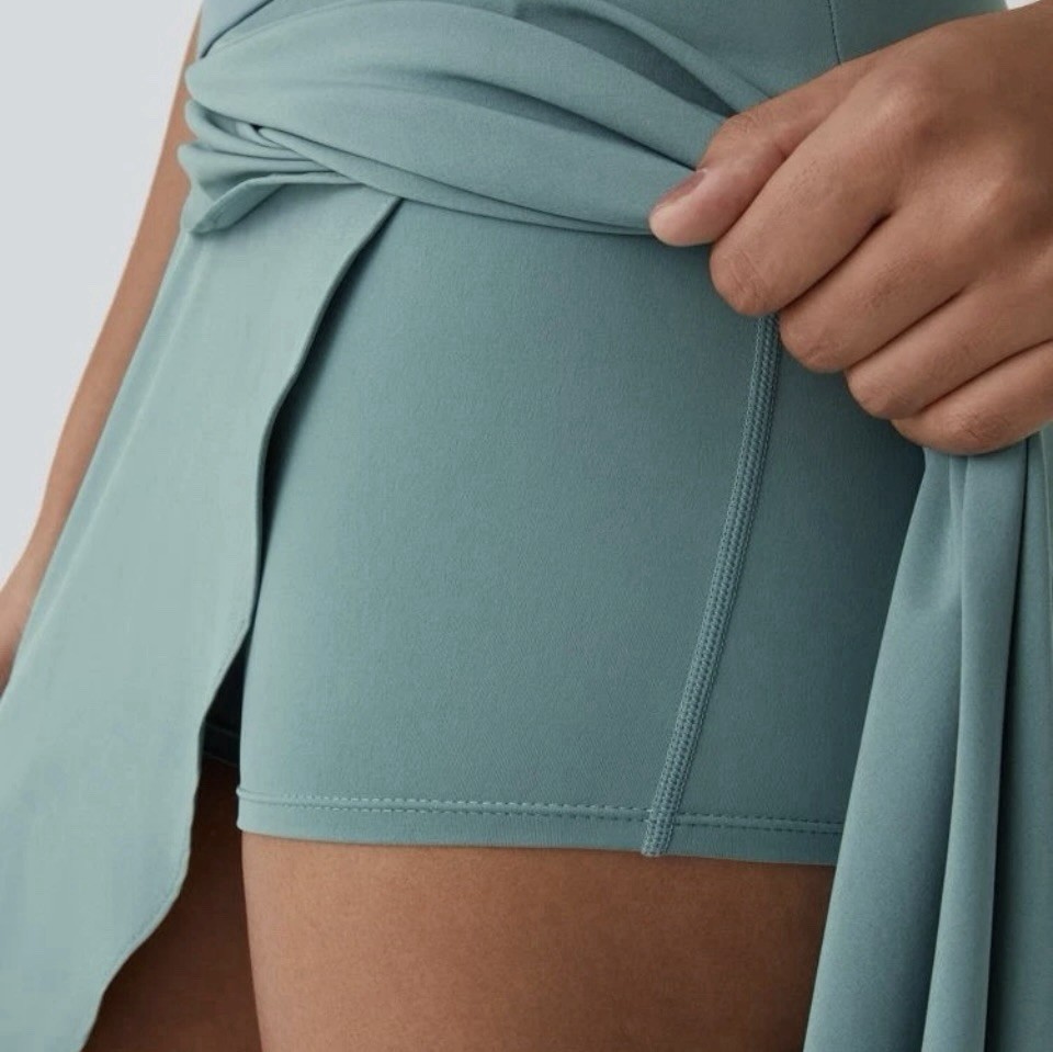 как выглядит Halara Breezeful High Waisted High Low Flowy Maxi Skirt Sz L Stone Blue NWT фото