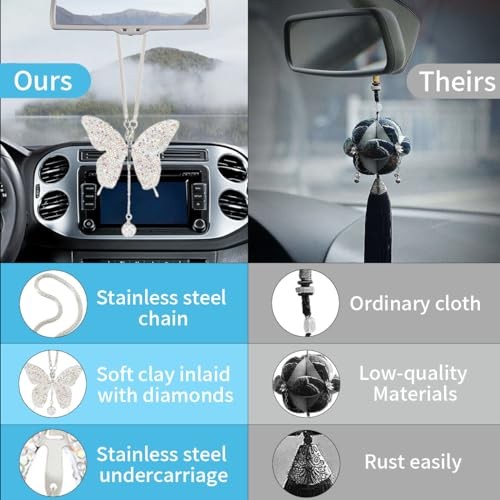 Bling Butterfly Diamond Car Hanging Accessories, Crystal Car Rear View AB-Color