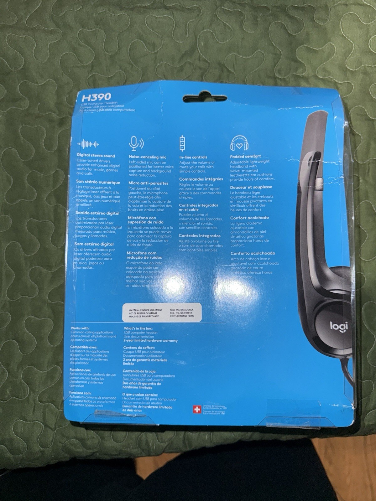 Logitech H390 USB Headset Noise-Canceling Microphone, InLine Controls, Black New