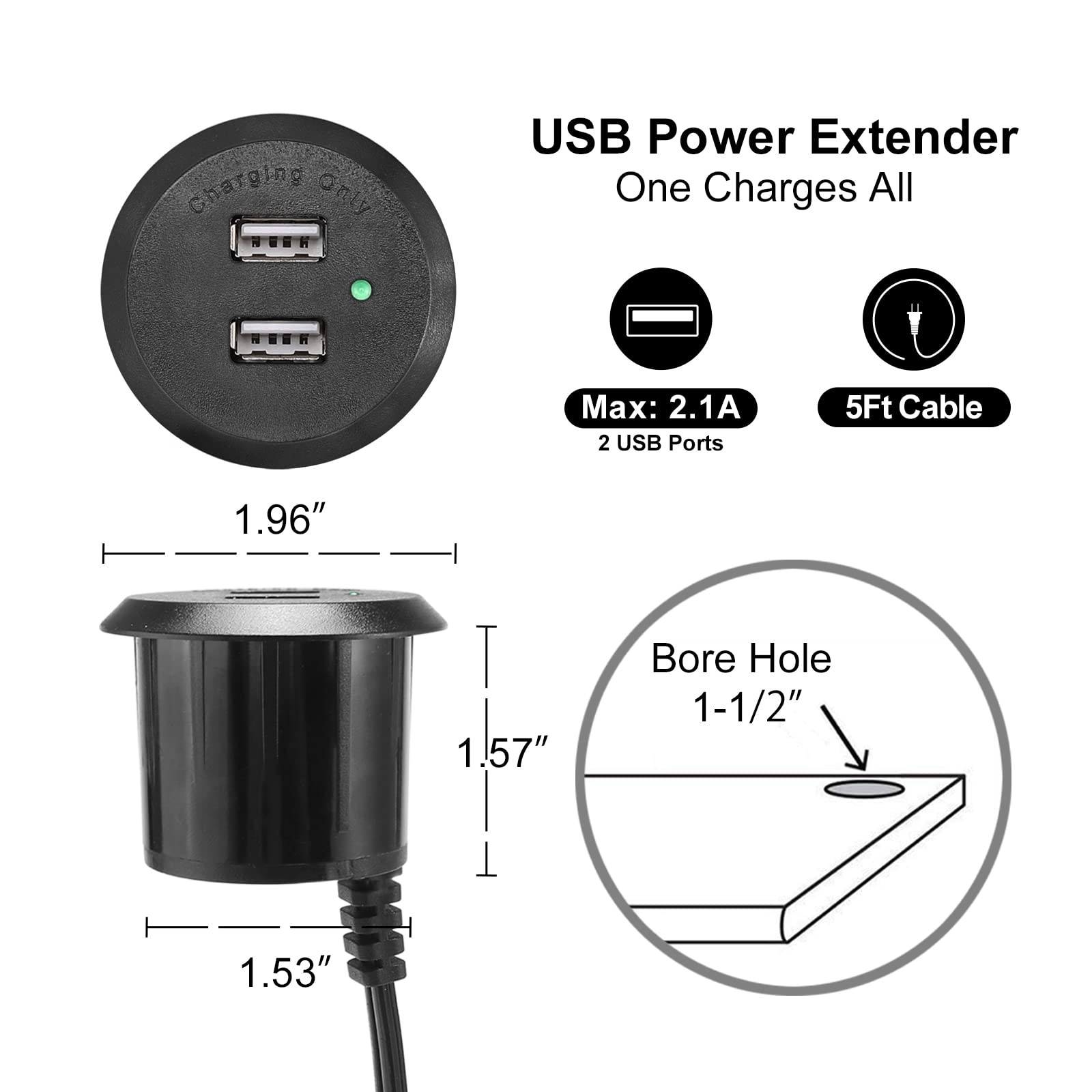 Desktop USB Power Grommet Recessed Mount Power Hub Desk Power Outlet USB Char