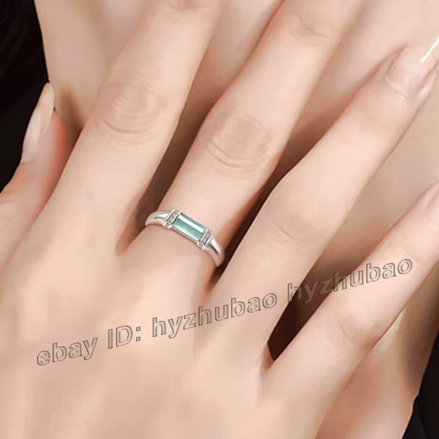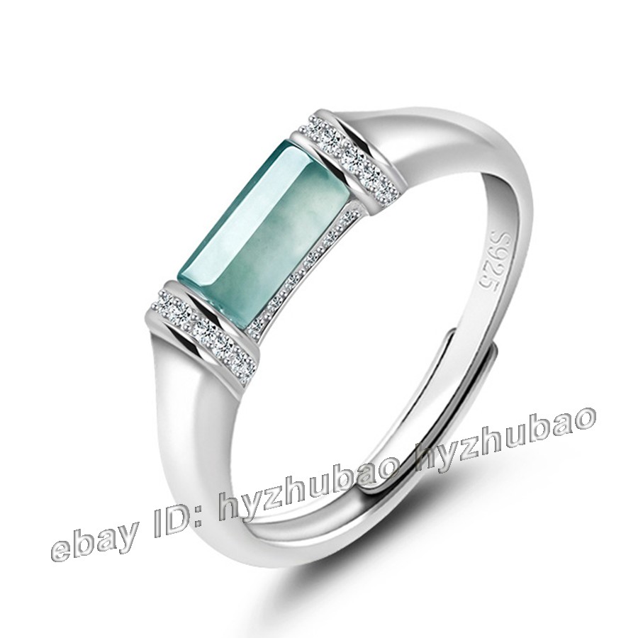 как выглядит Certified Green Natural Rectangle Grade A Jade jadeite 925 Silver Inlay Ring фото