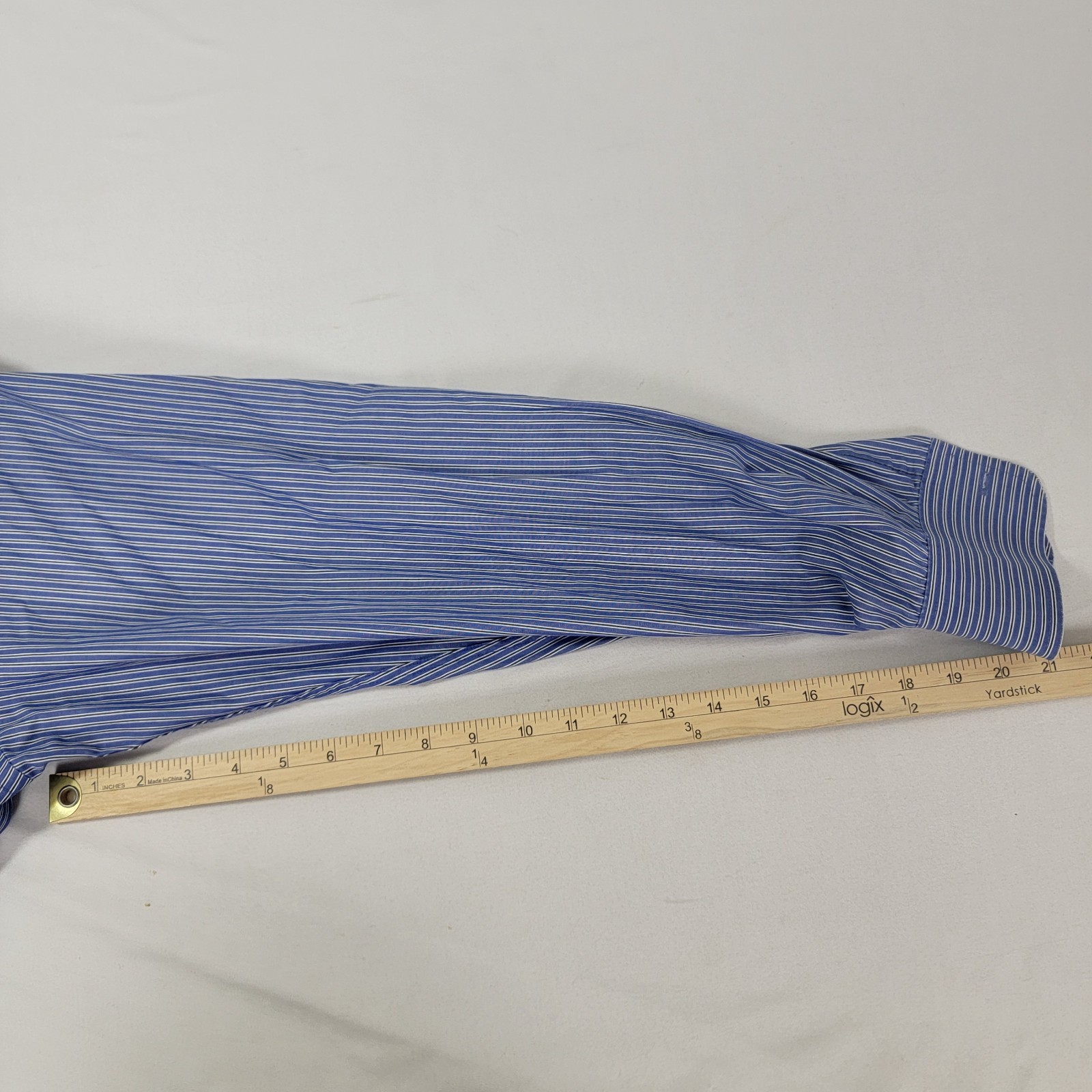 как выглядит Chaps Mens Long Sleeve Blue Striped Button Down Shirt Size 15-15.5 34 / 35 фото