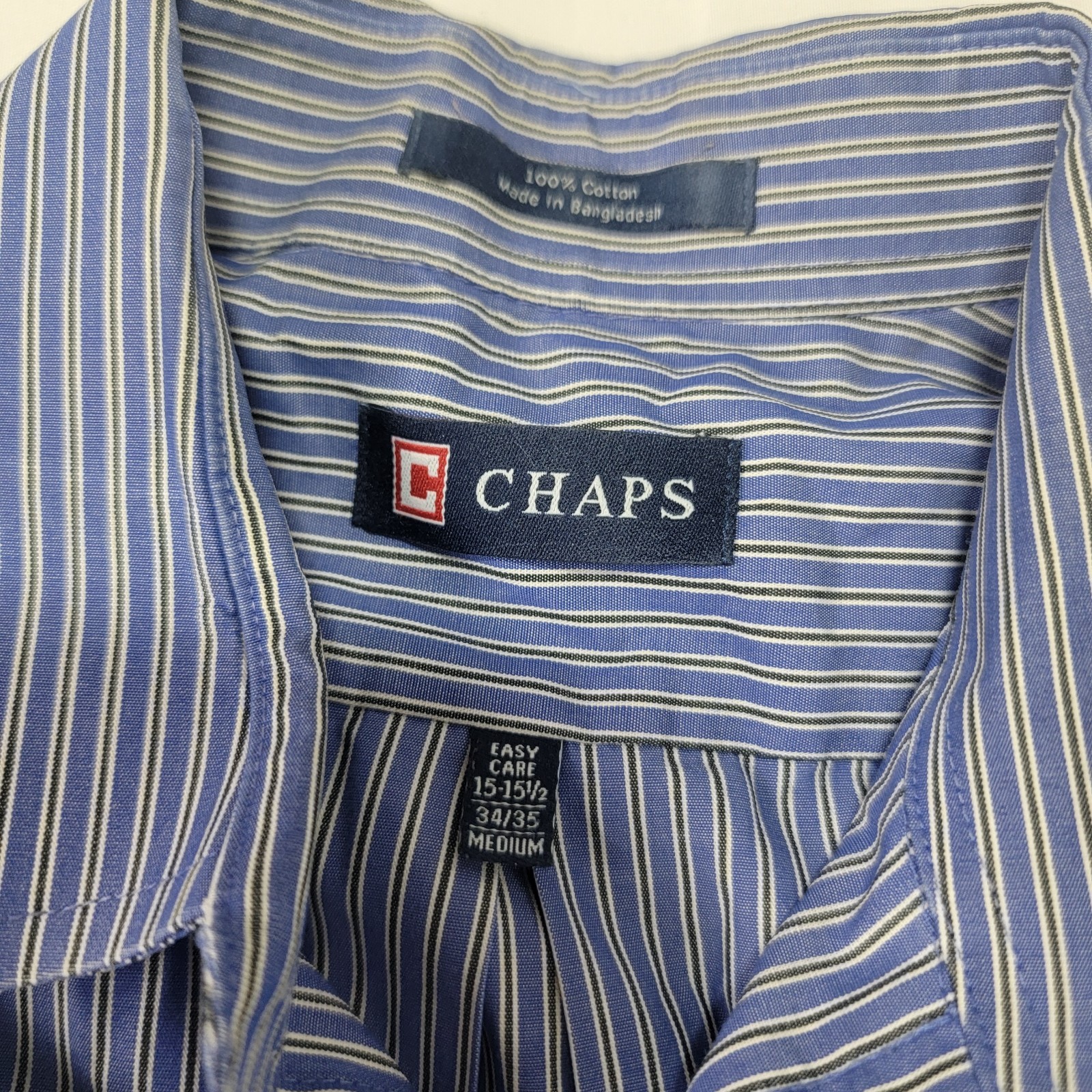 Chaps Men's Long Sleeve Blue Striped Button Down Shirt Size 15-15.5 34 / 35