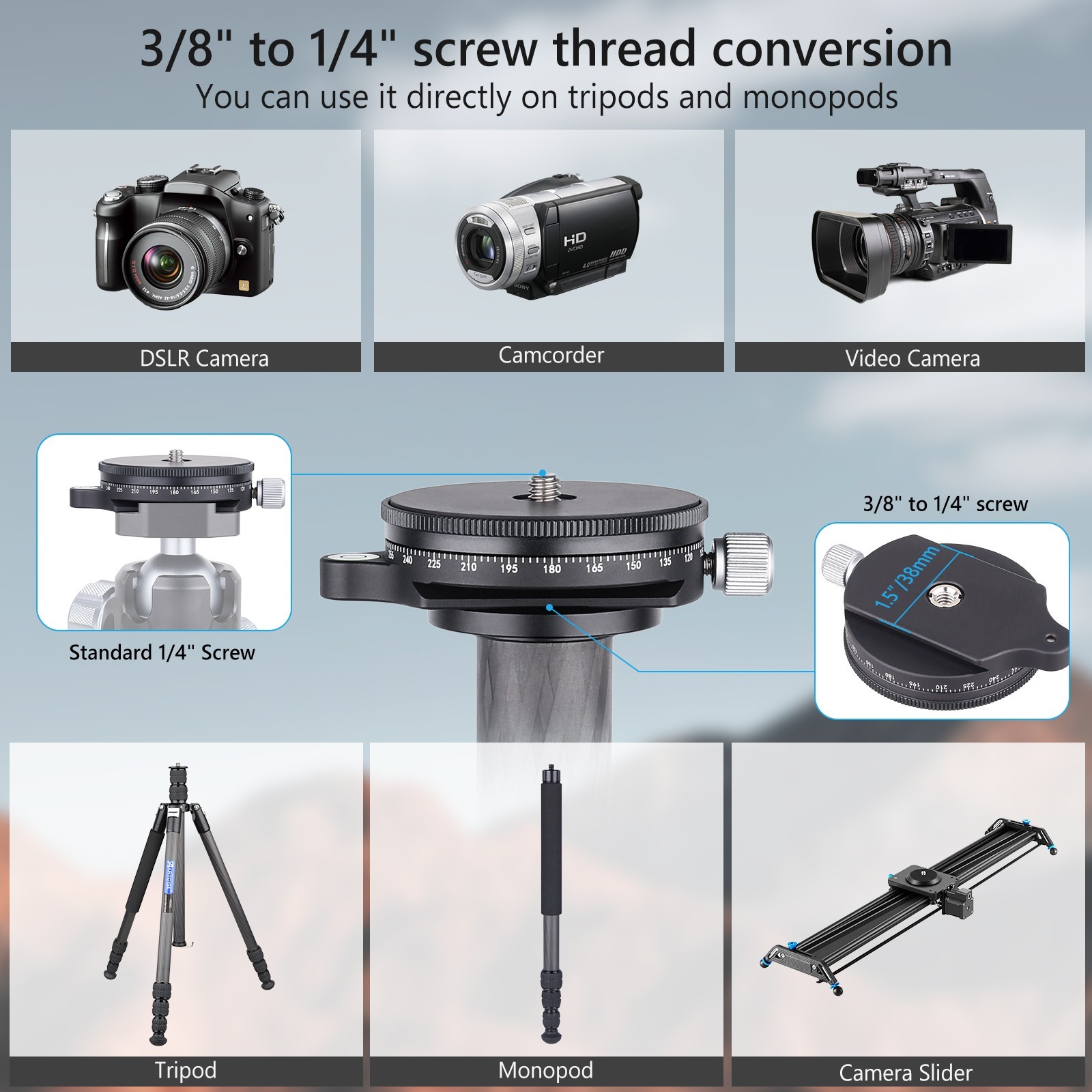 как выглядит Tripod Leveling Base Camera Leveler Adjusting Plate 360 Panoramic Pan Base фото