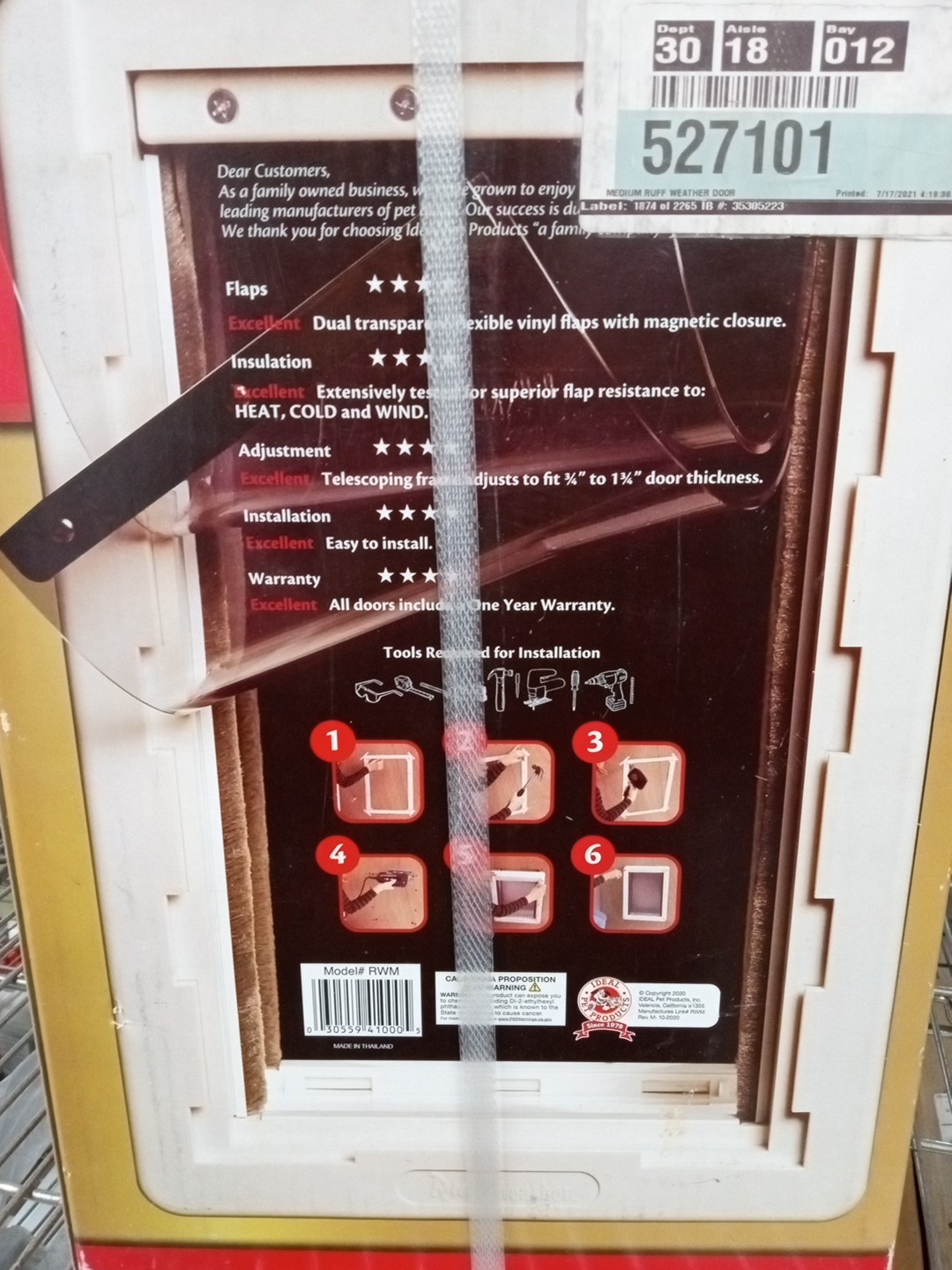 Ideal Pet Products RUFF WEATHER Dog Door Medium 7.25 x 13 Flap SEALED