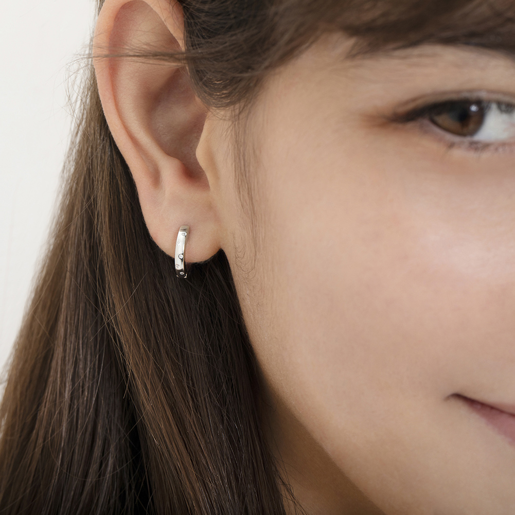 как выглядит Staggered CZ Gems 9mm Kids / Girls / Child Earrings Hoop - Sterling Silver фото