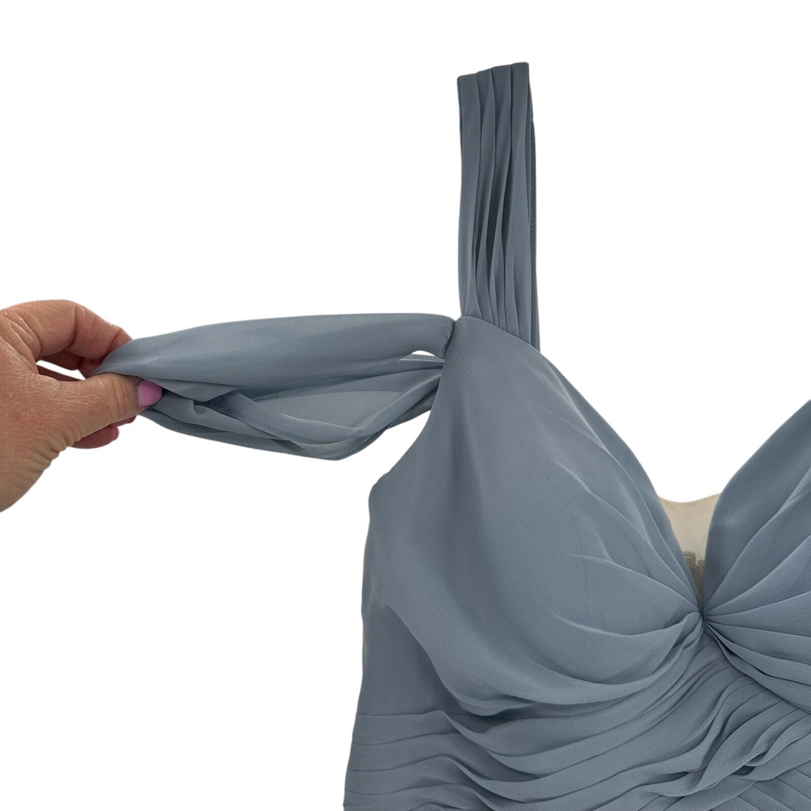 Azazie Ocean Moods Blue Baby Doll Maxi Dress Pleaded Bridesmaids Formal Gown 10