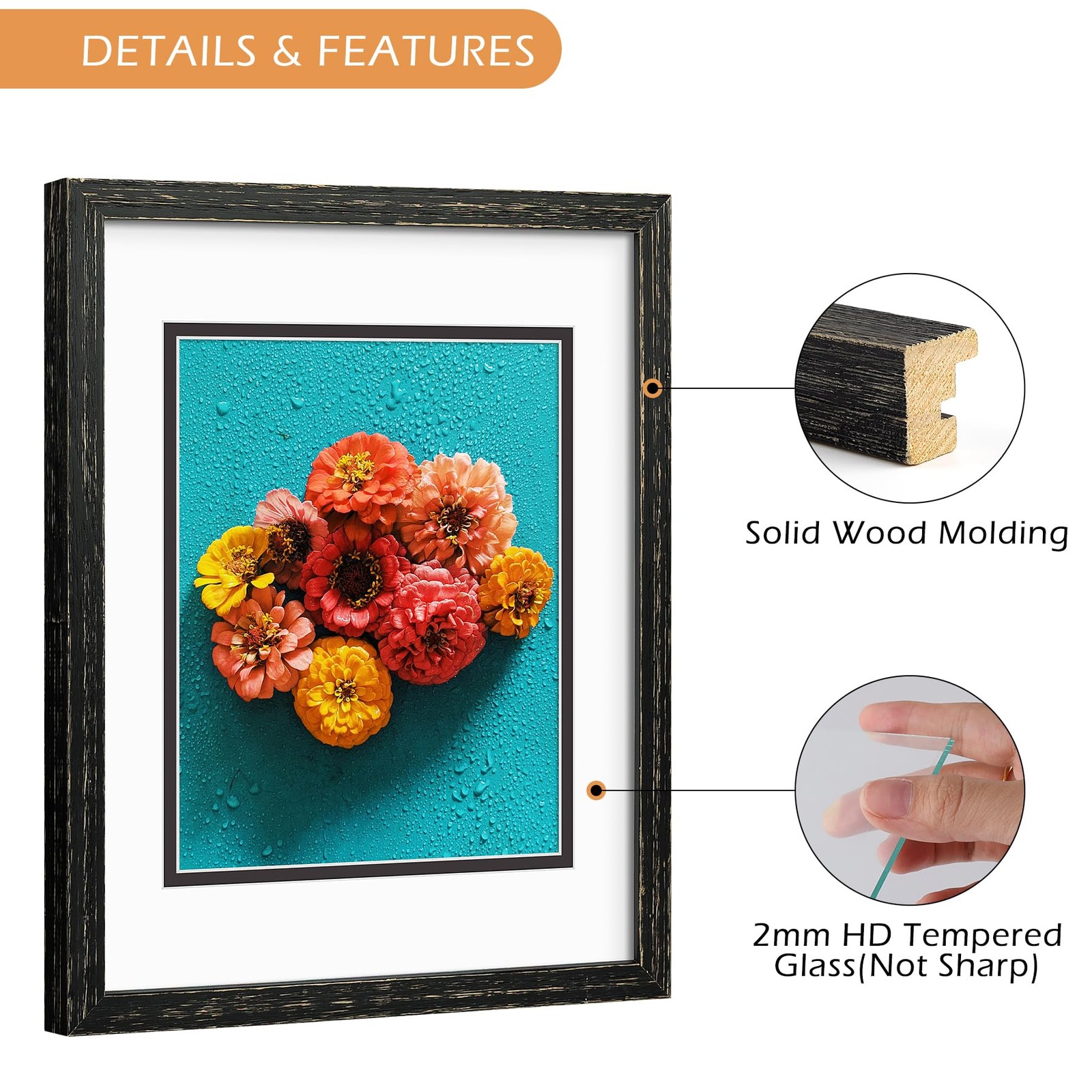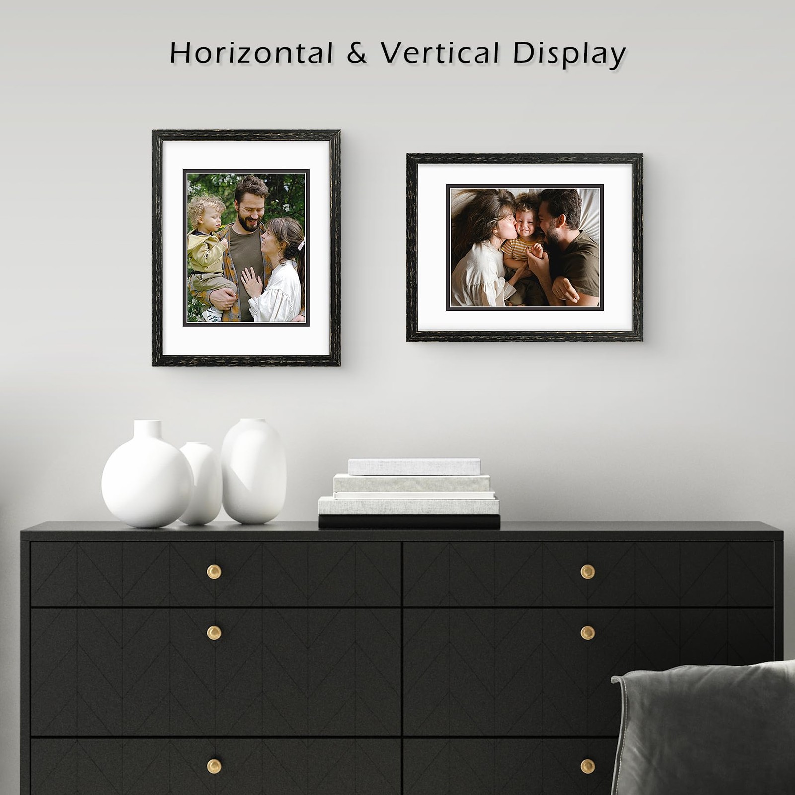Golden State Art 11x14 Distressed Black Wood Frame with White over Black Doub...