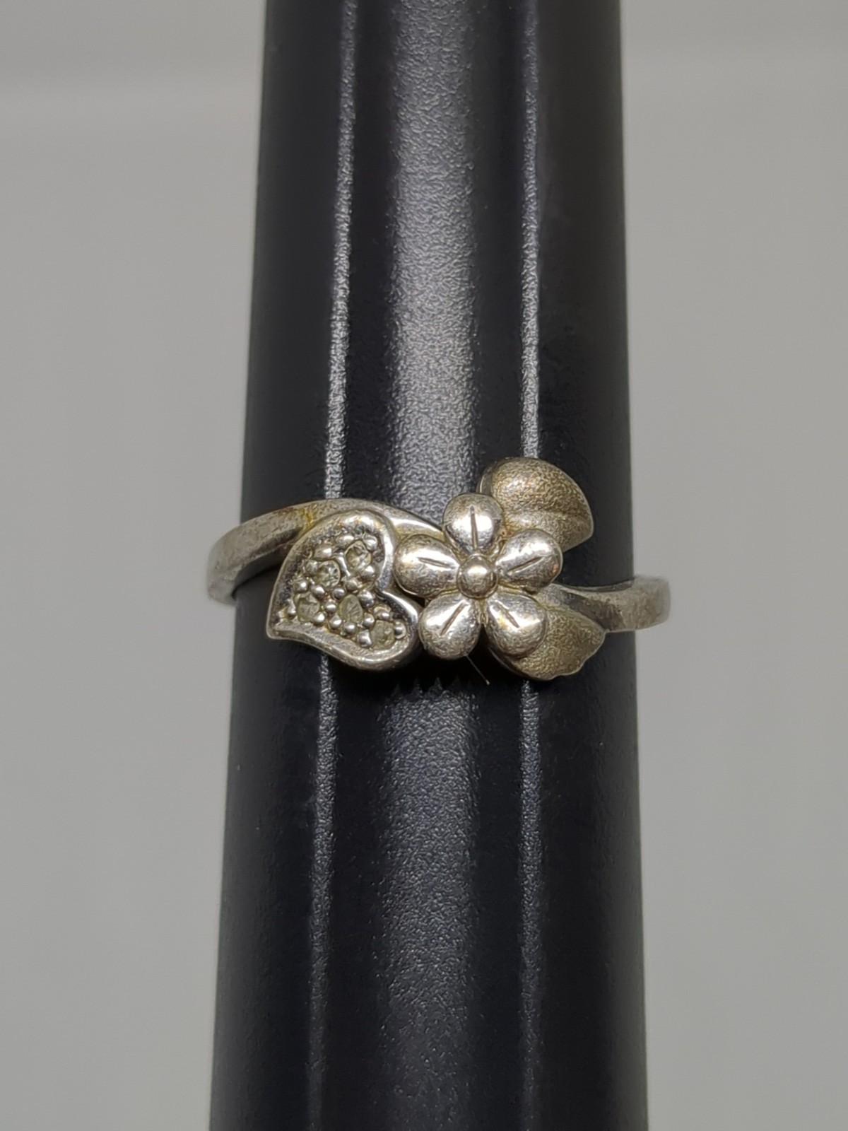 как выглядит Vintage Sterling Silver 925 CZ Flower Ring Size 8.25 фото