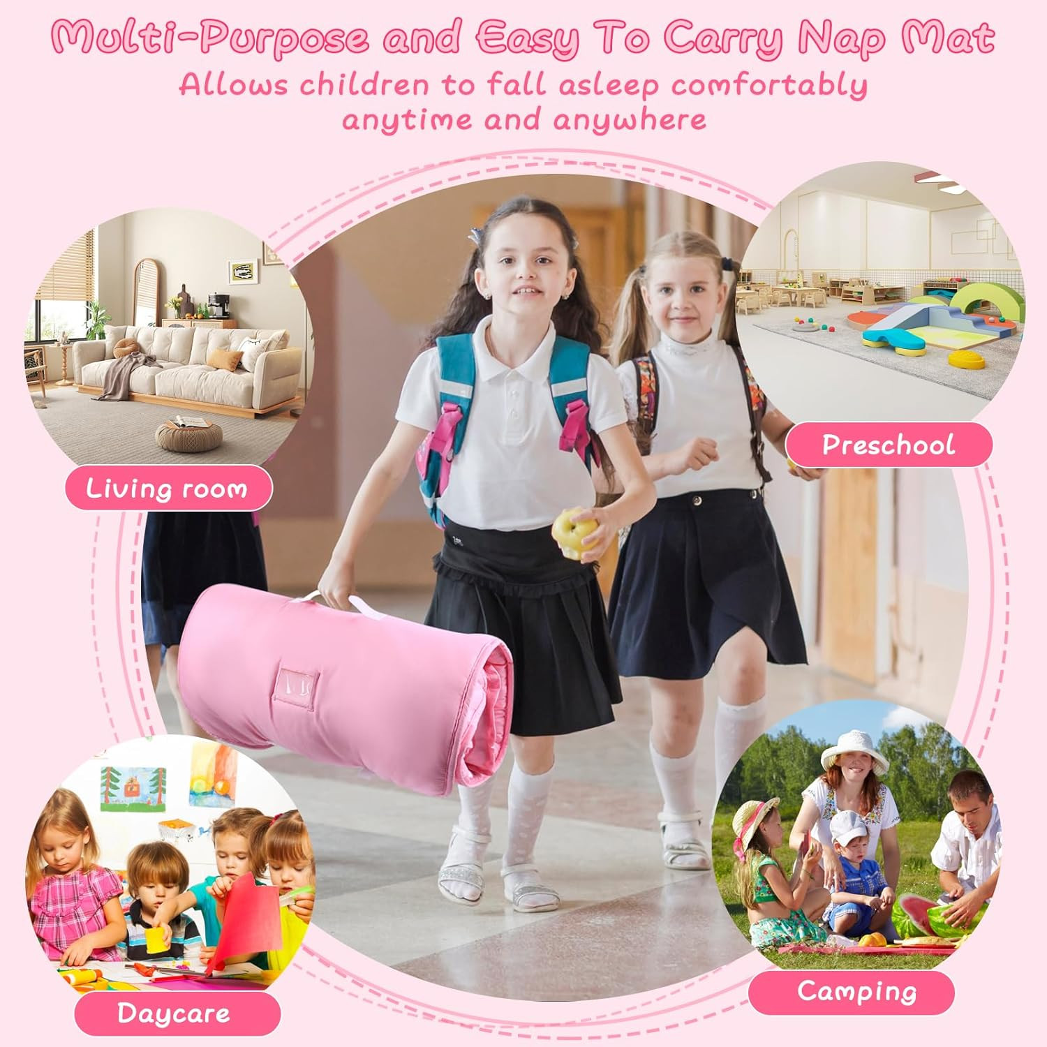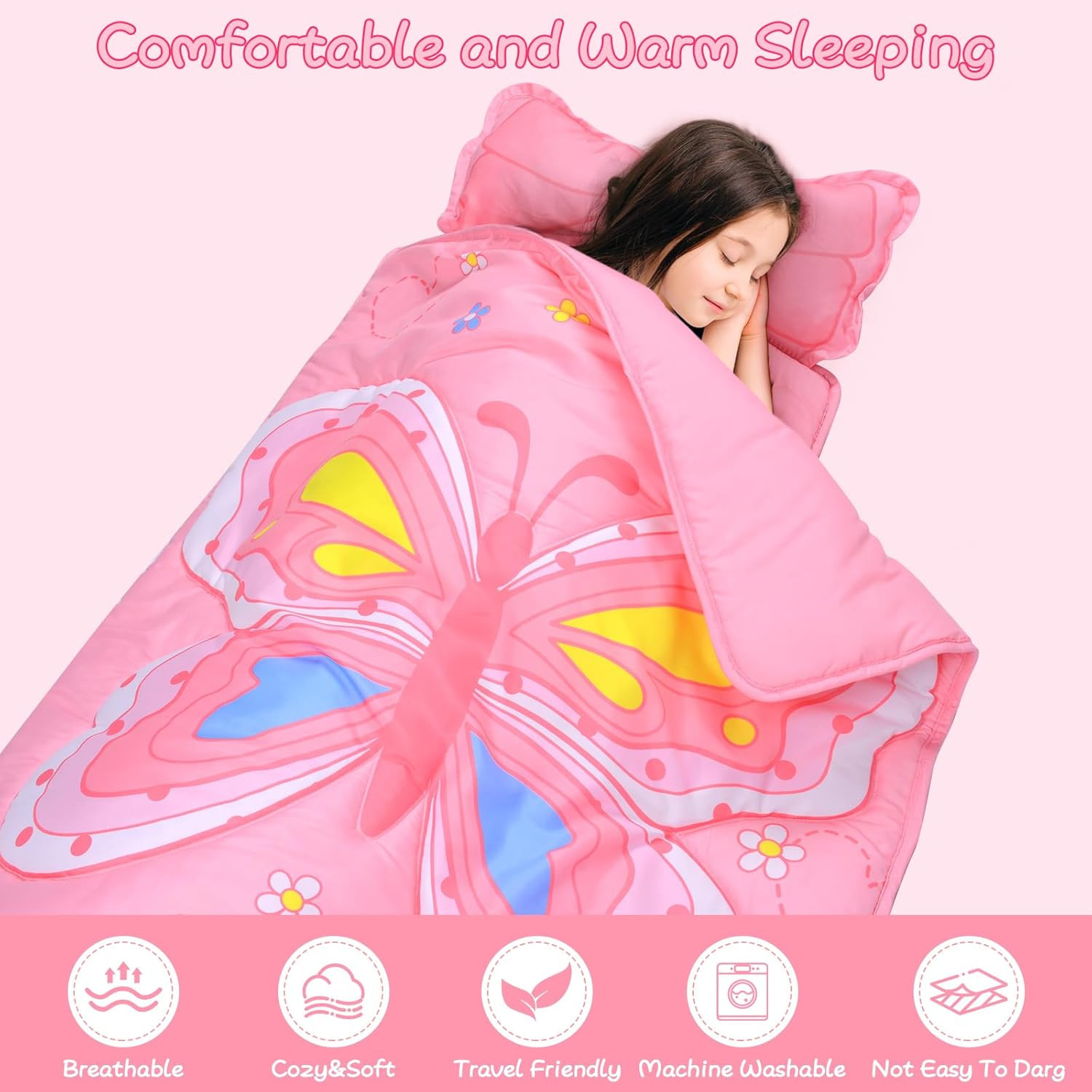 Toddler Nap Mat with Removable Pillow - 53X21 Sleeping Bag for Kids Ages 3-7Ye