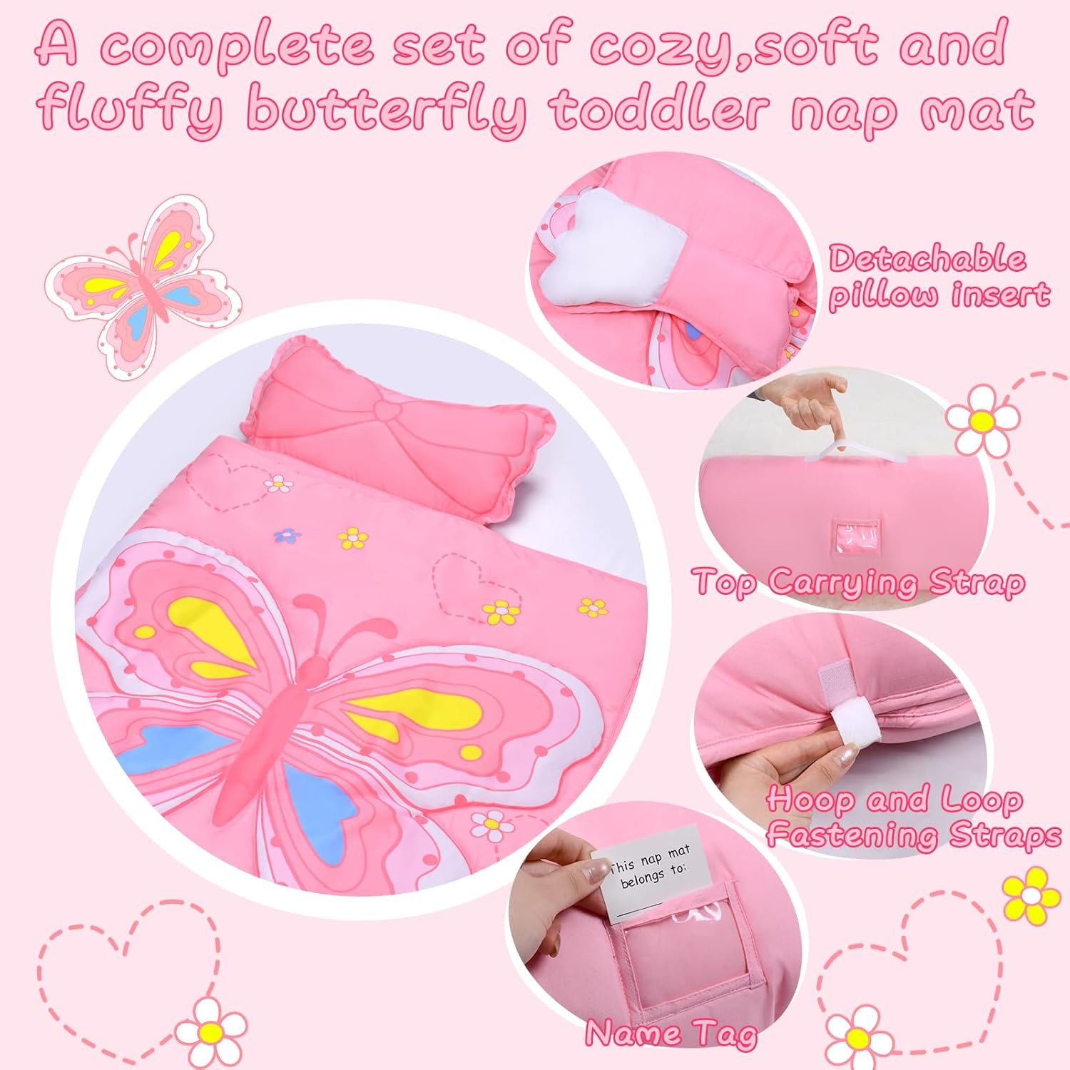 как выглядит Toddler Nap Mat with Removable Pillow - 53"X21" Sleeping Bag for Kids Ages 3-7Ye фото