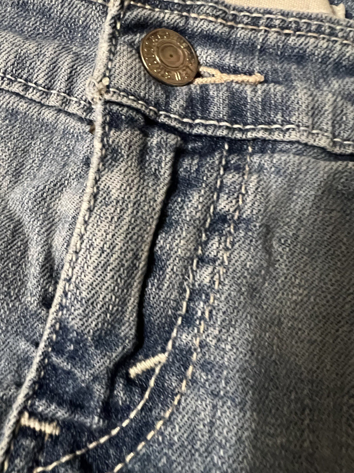 как выглядит Vintage Upcycled Levi s Indi Sleaze Distressed Denim Mini Skirt фото