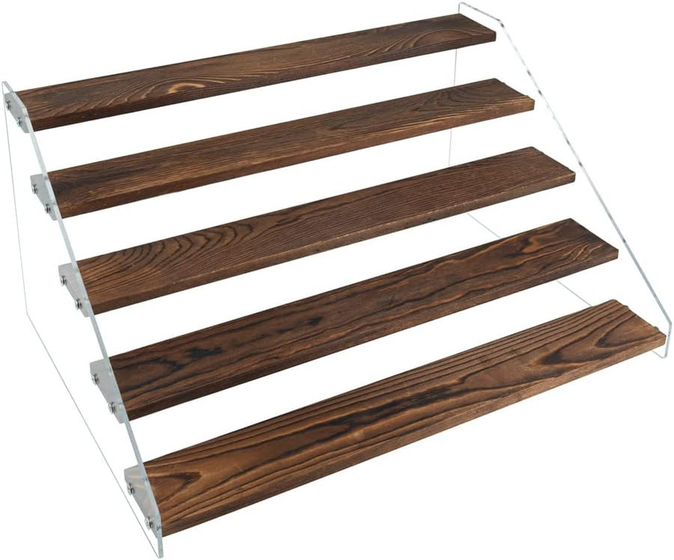 Display Shelf Stand, Clear Acrylic Riser Shelves Wood Acrylic Storage for Figure