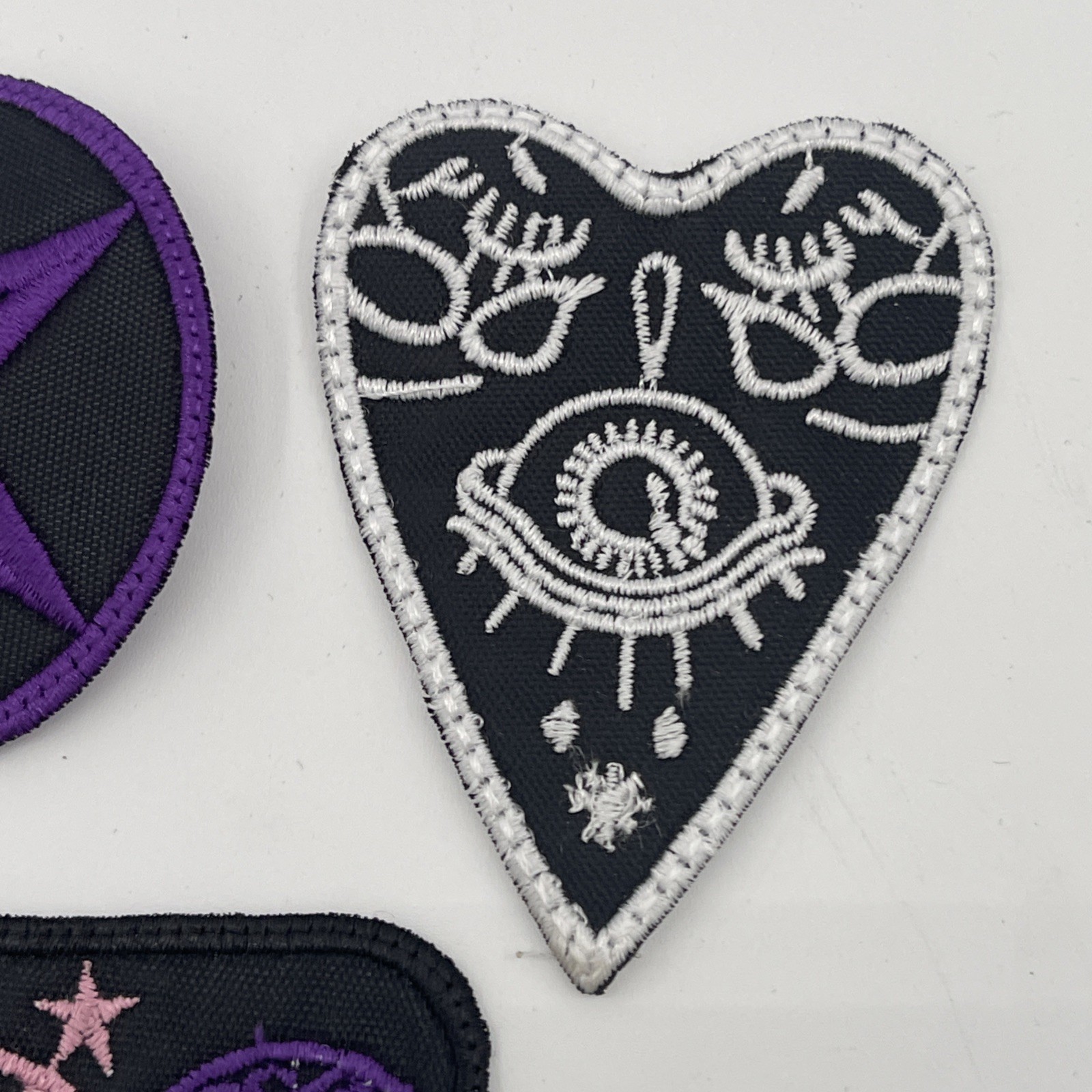Set Of 3 Dark Occult Goth Witchcraft Patches: Sew On, Embroidered, Approx 3 Ea.