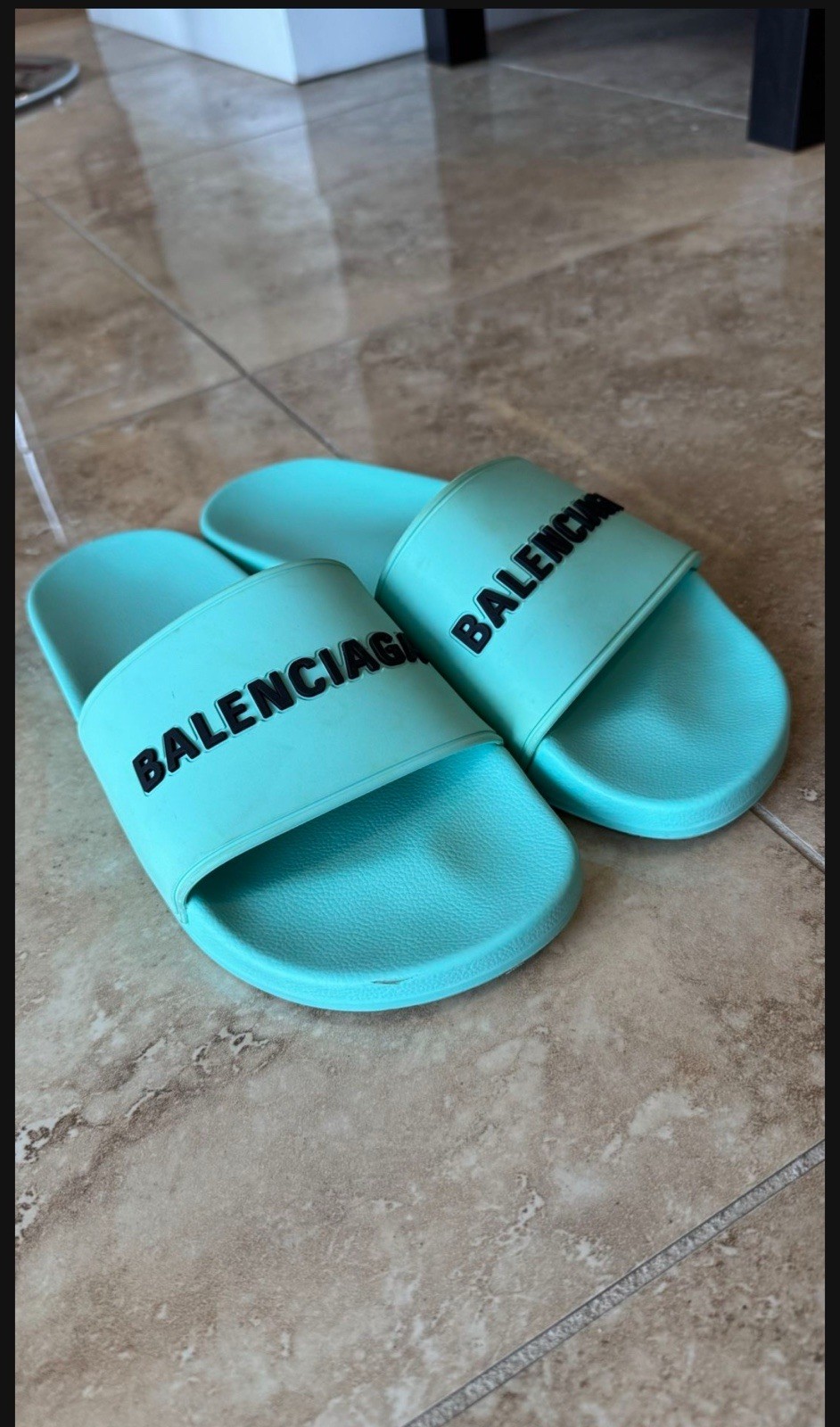 как выглядит Balenciaga Classic Logo Slides Teal Men Size 7 фото