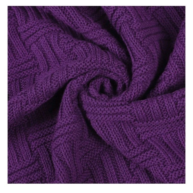 как выглядит PiccoCasa 100 Cotton Cable Purple Knit Soft Throw Blanket 50"x60" фото