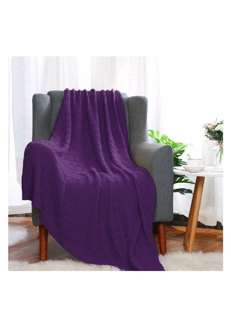 PiccoCasa 100 Cotton Cable Purple Knit Soft Throw Blanket 50x60