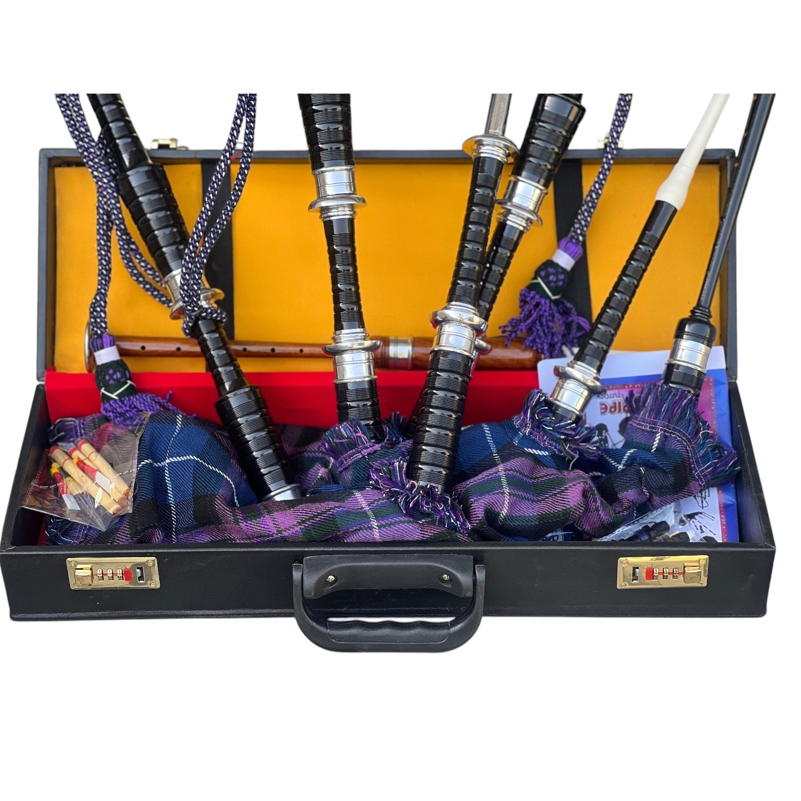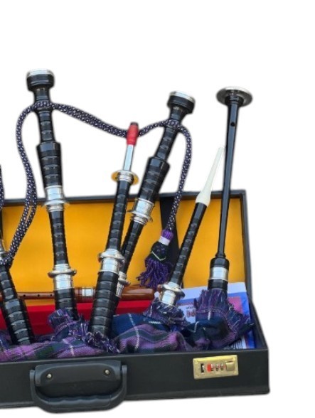 Scottish Great Black Bagpipe Full Size Bagpipe With Silver Mounts Hard Case