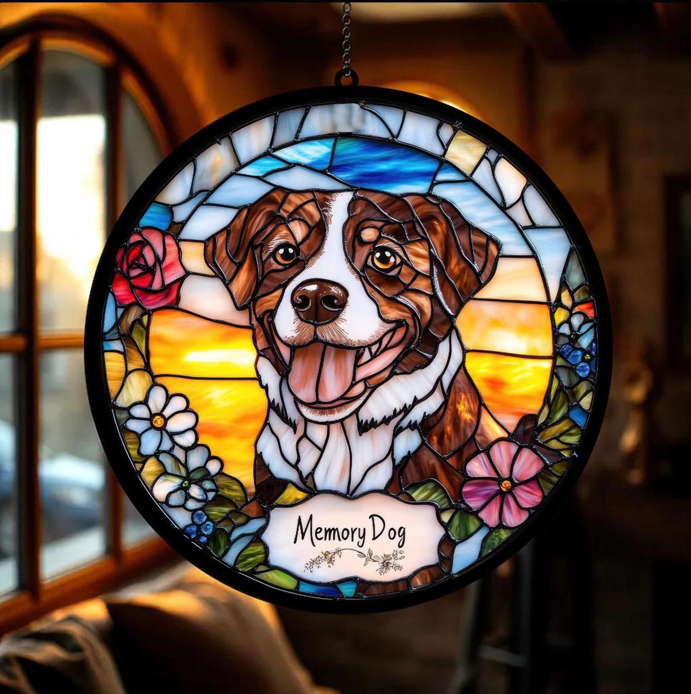 Custom Pet Portrait Stained Glass Suncatcher, Dog Memorial Window Hanging Decor