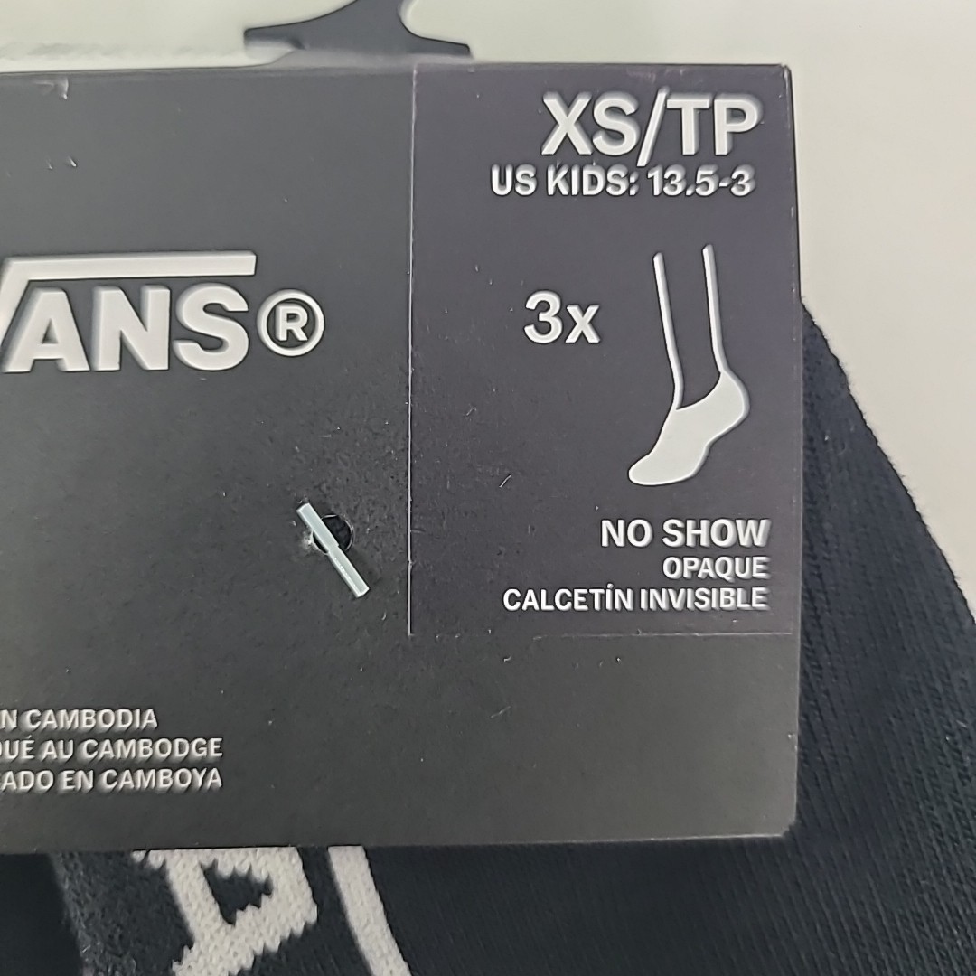 VANS Off The Wall Kids No Show Socks Black White TWO 3-Packs US Shoe 13.5-3