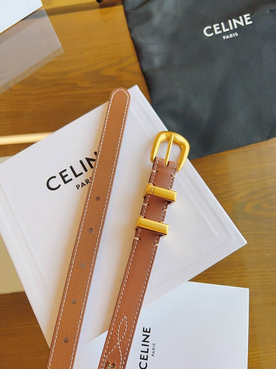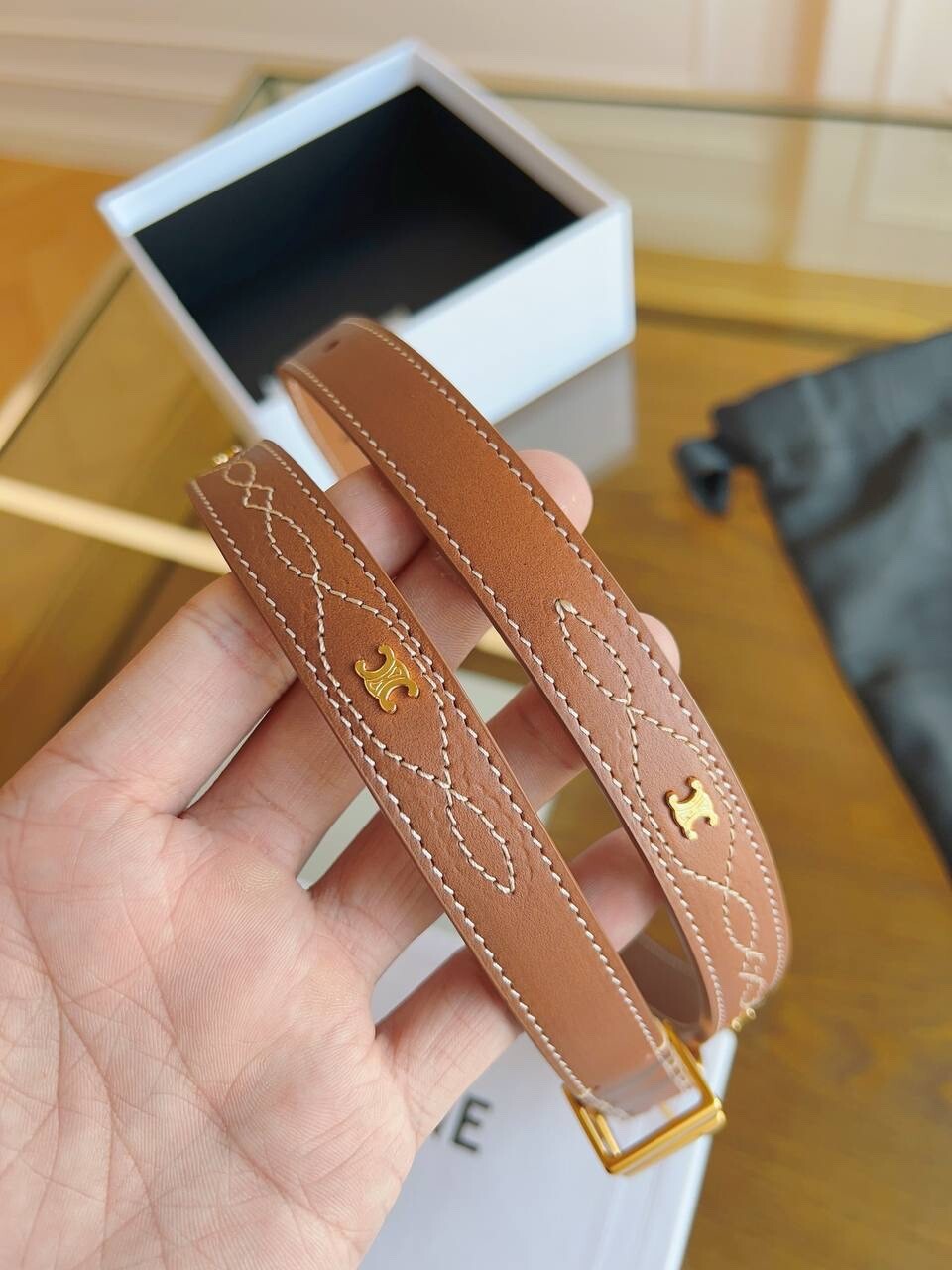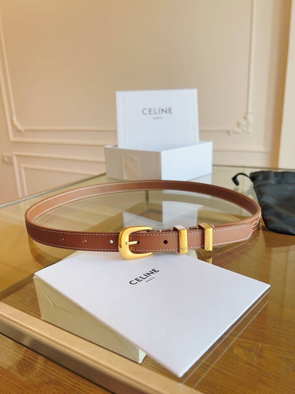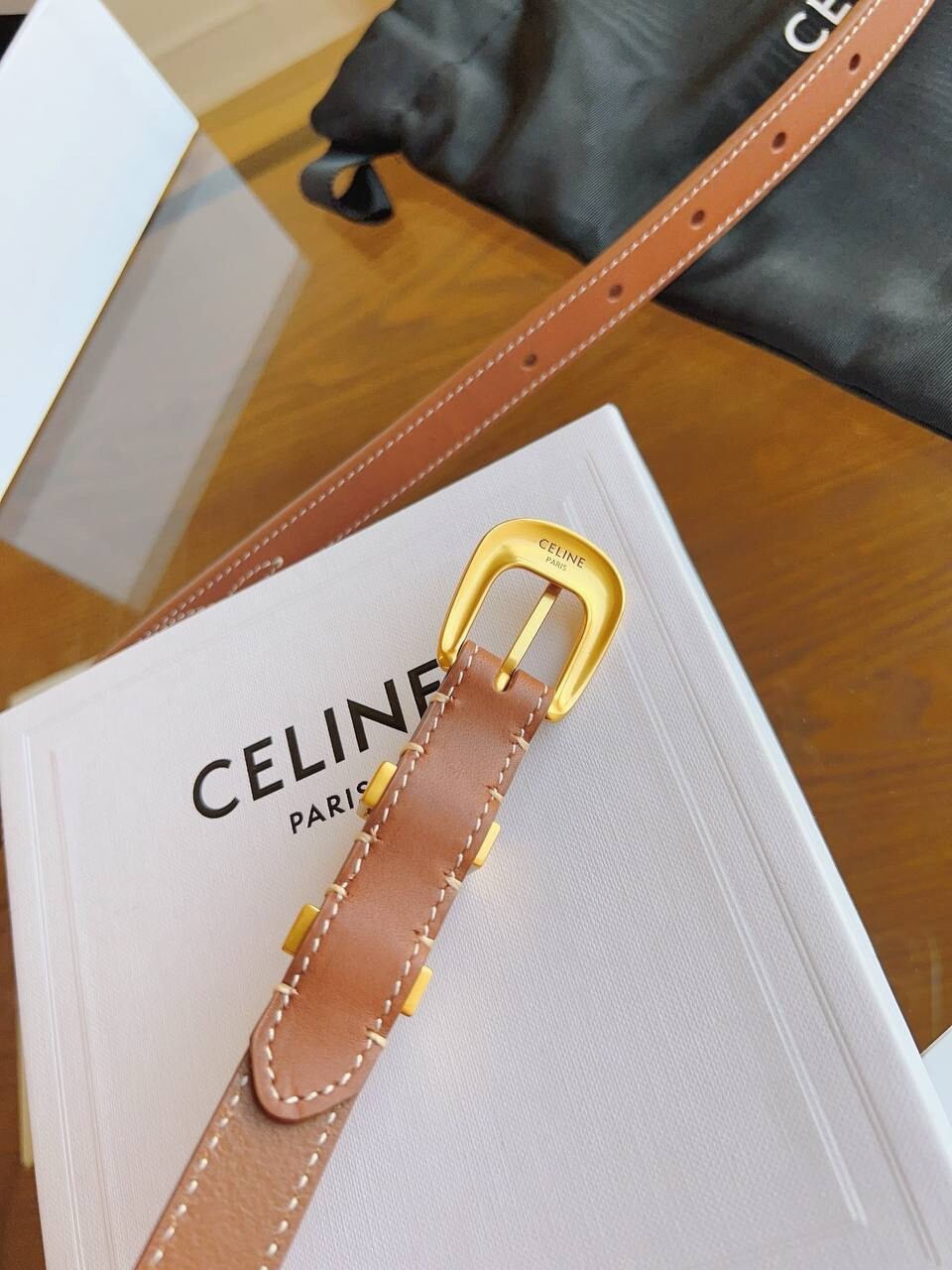 как выглядит CELINE Triomphe Belt  Tan Calfskin Leather  Gold Hardware  80 cm  Brand New фото