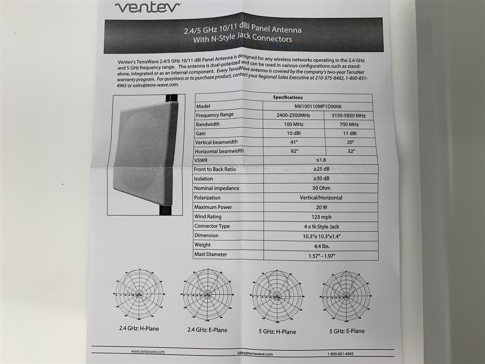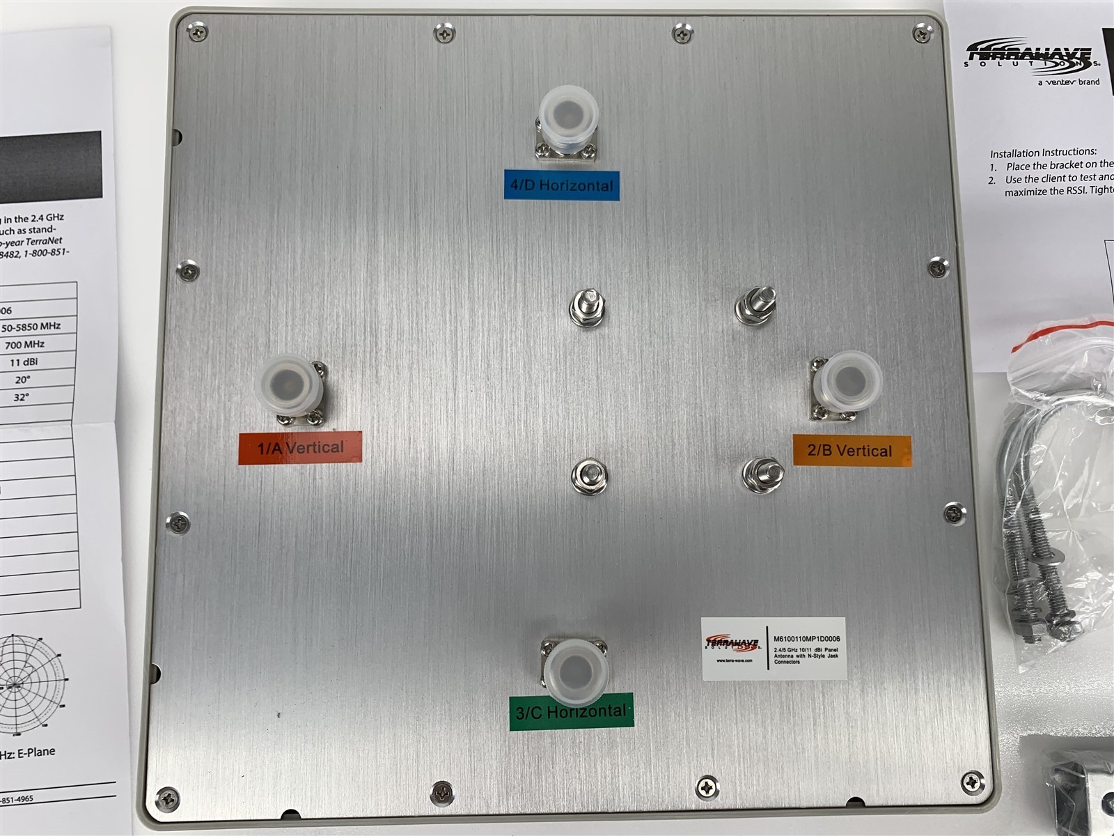 Terrawave 2.4/5 GHz 10/11 dBi Wi-Fi Panel Antenna w/ 4 N-Style Connectors