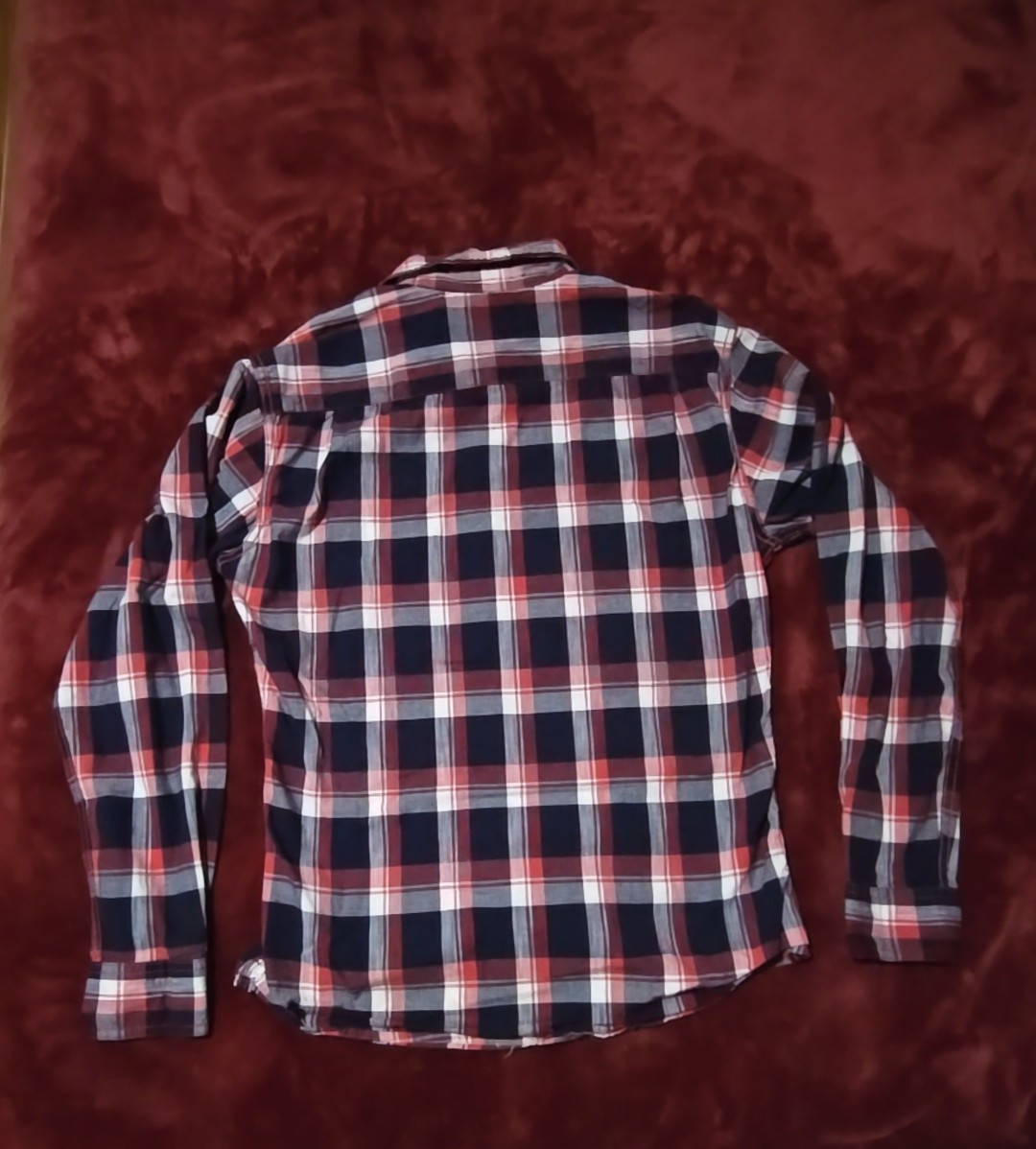как выглядит Wrangler Men s L Red and Blue Plaid Flannel Button-Up Shirt Western фото