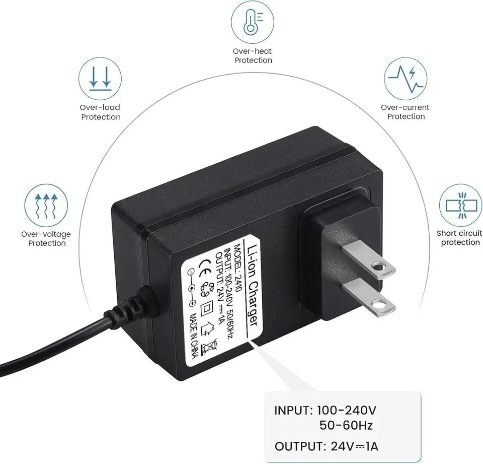 24V Battery Charger for Kids Ride On Car Toys, 24 Volt Power Adapter Black