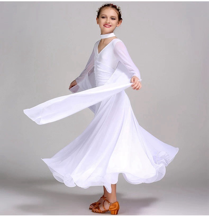 Girls Long-Sleeve Ballroom Dance Dress, Waltz / Standard Dance Costume