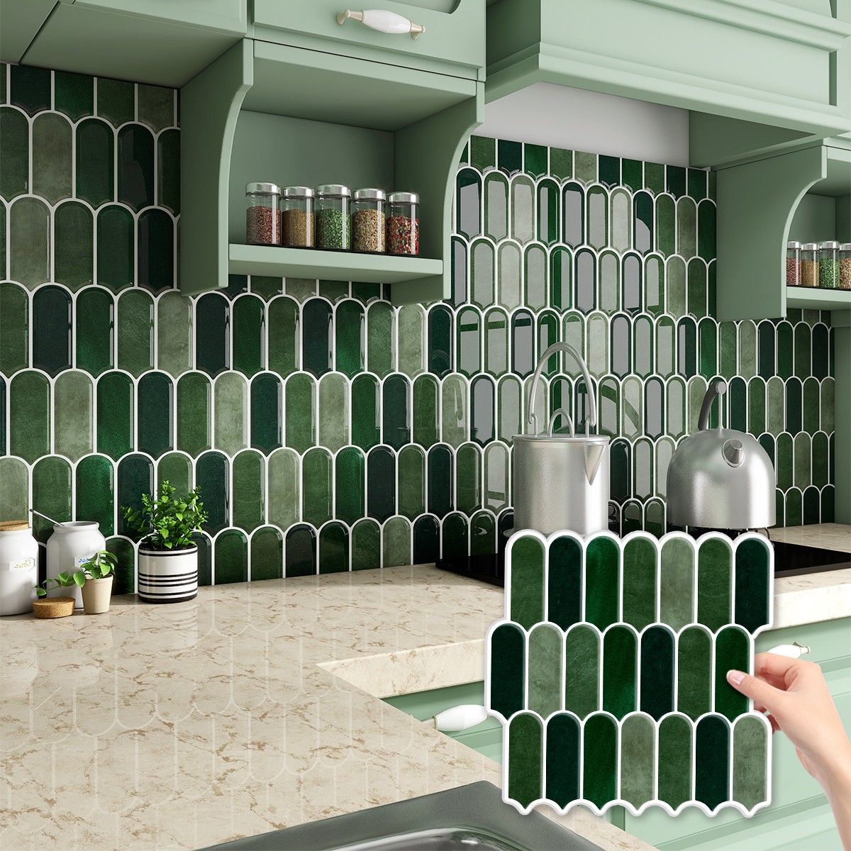10PCS Peel Stick Backsplash,Self-adhesive Green Wall Tiles for Kitchen 12x12