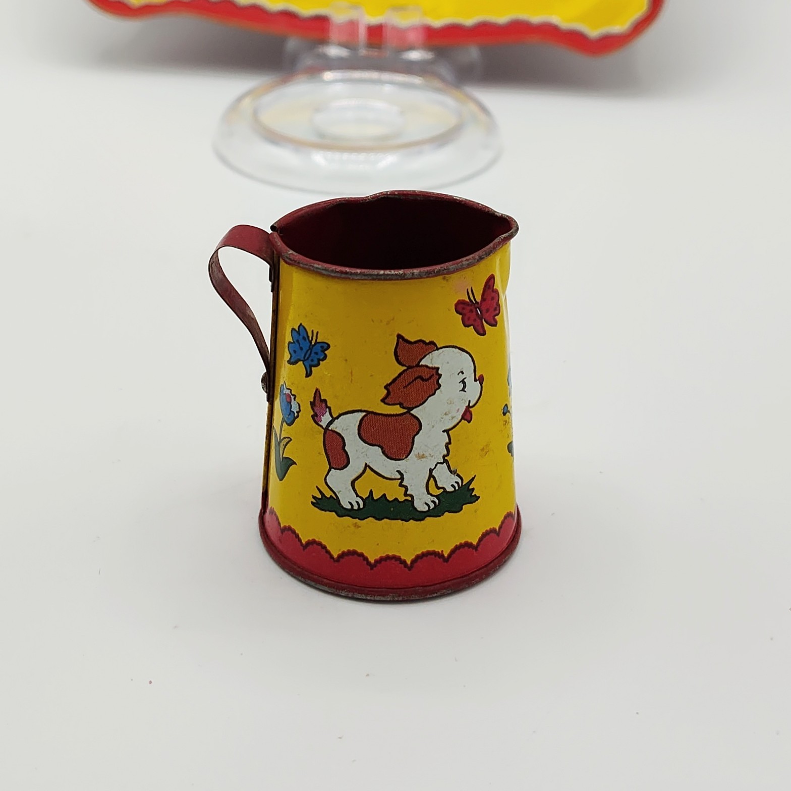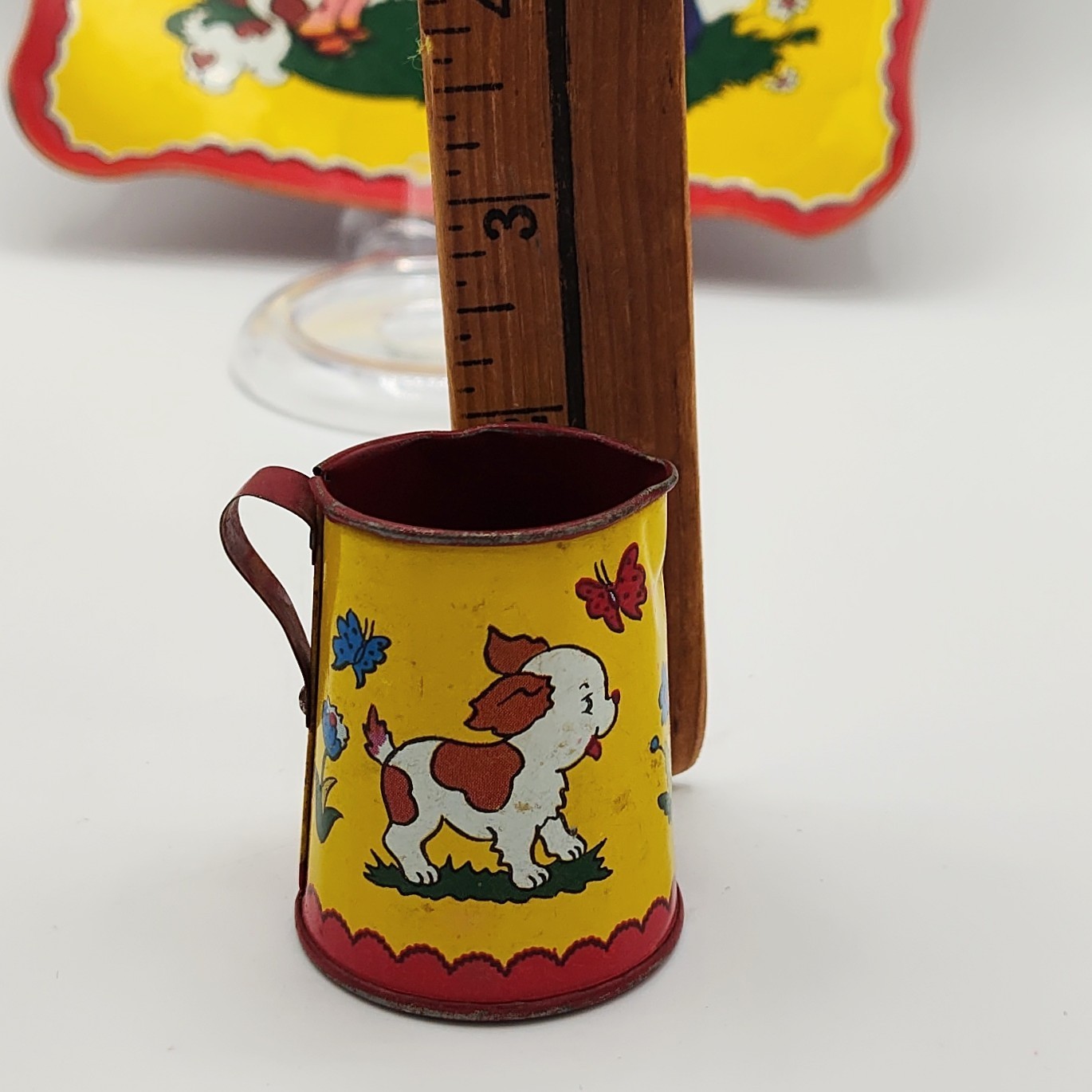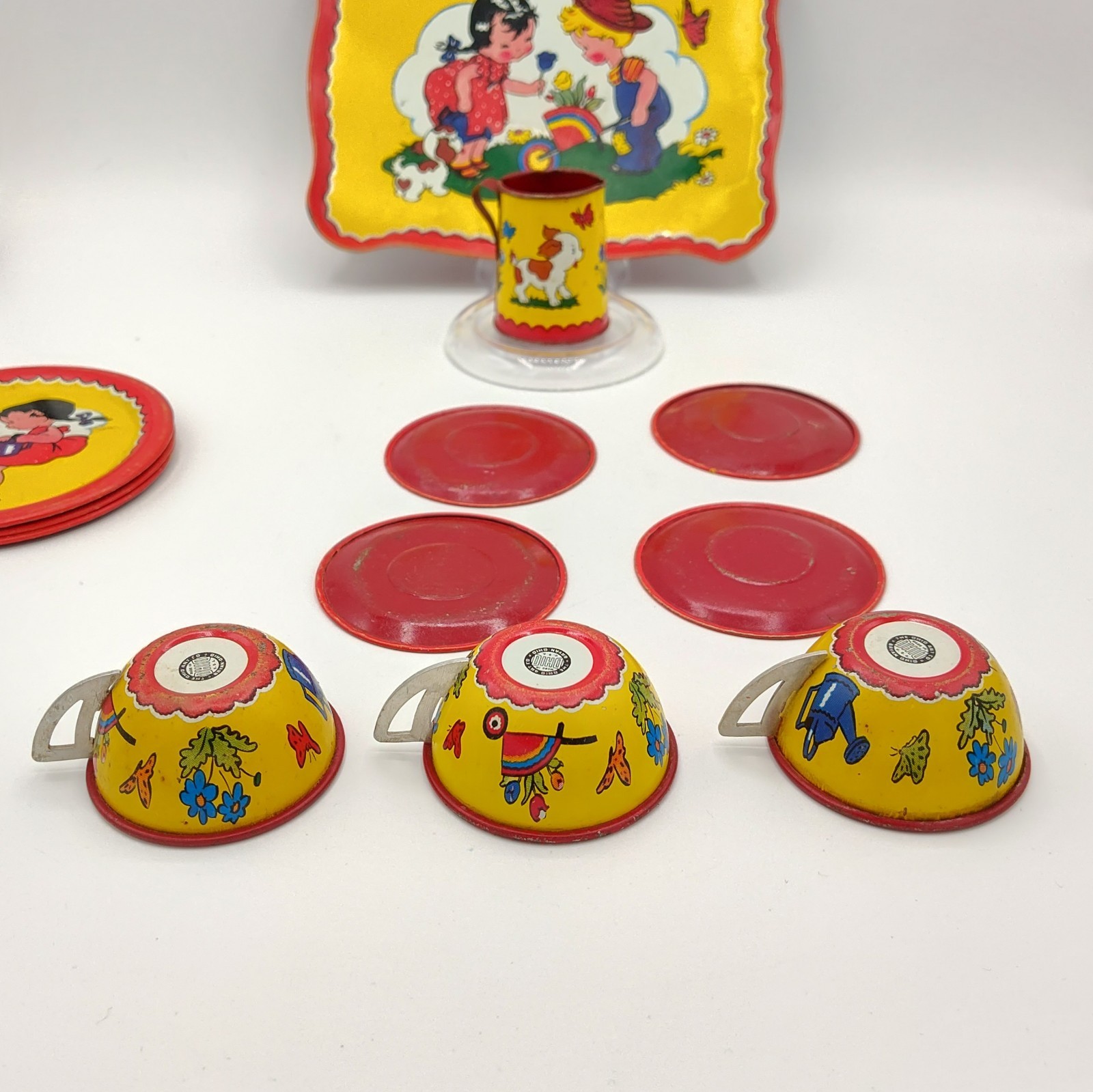 Vtg Ohio Art Childs Tin Tea Set 173 - Tray, Pitcher, 3 Cups, 4 Plates, 4 Saucers