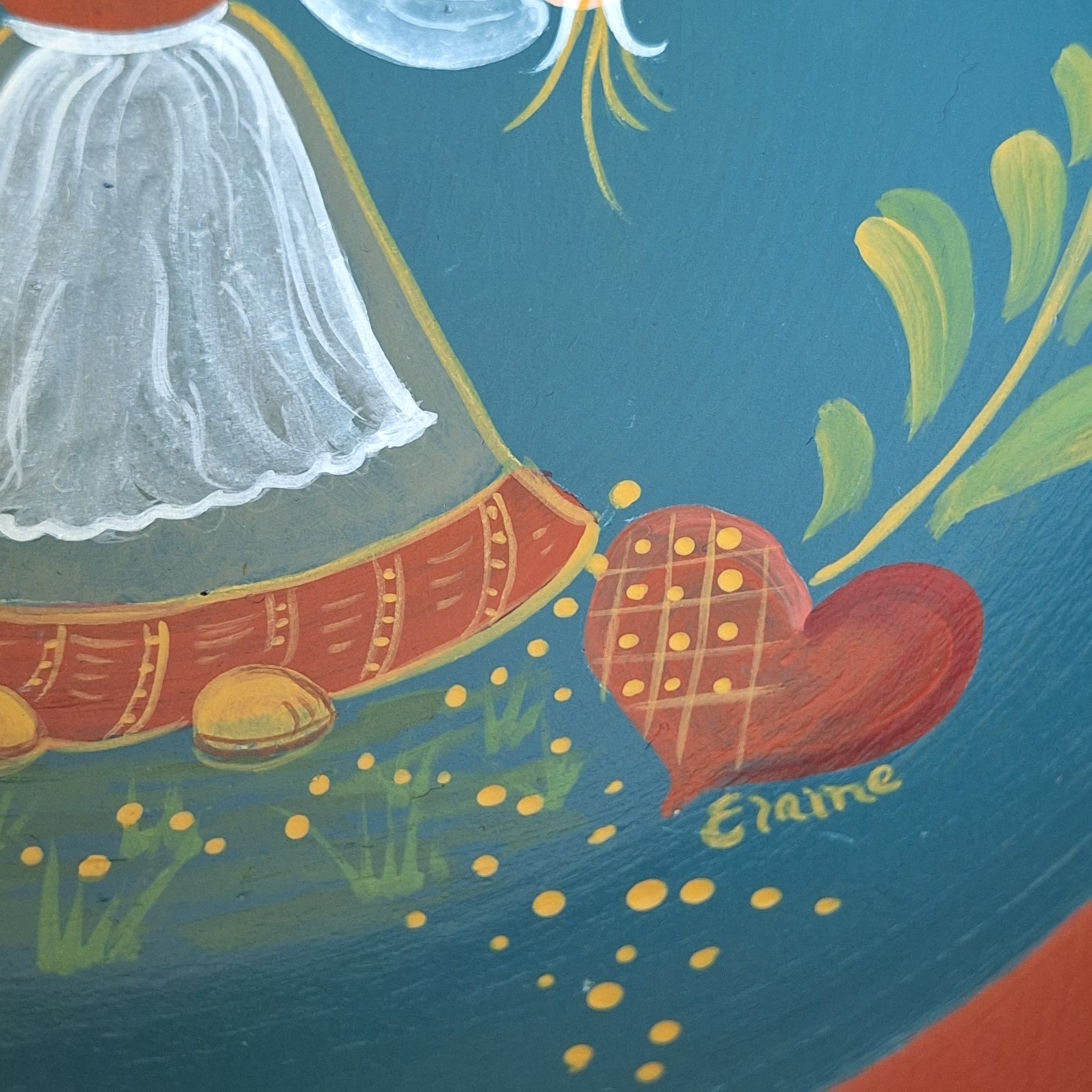 как выглядит Vintage Handpainted Rosemaling Folk Art Wood Bowl Dutch Girl Primitive Rustic фото