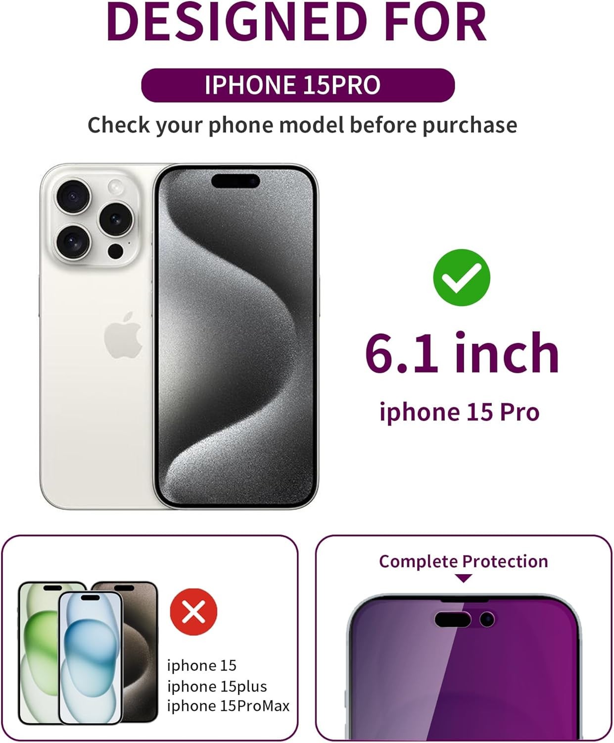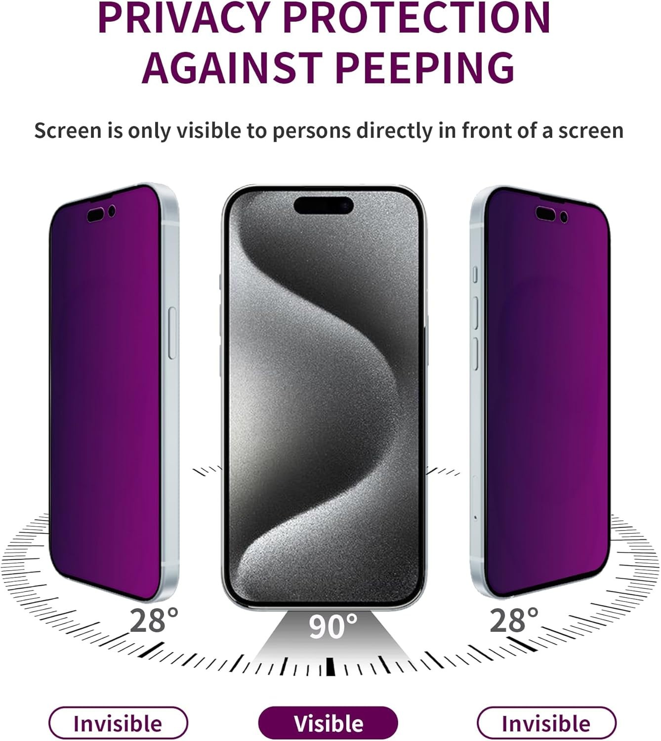 2 Pack Privacy Screen Protector for iPhone Gradient Purple 15 Pro
