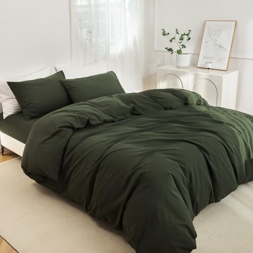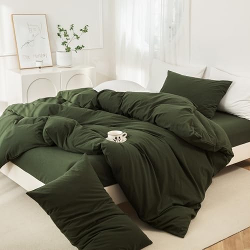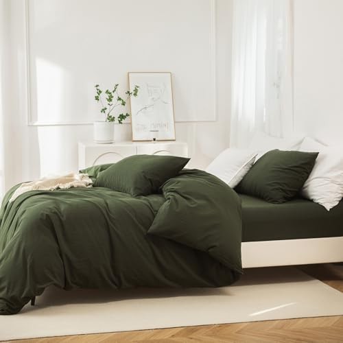 100 Washed Cotton Duvet Cover Set 3 King 104x90 Olive Green no Comforter