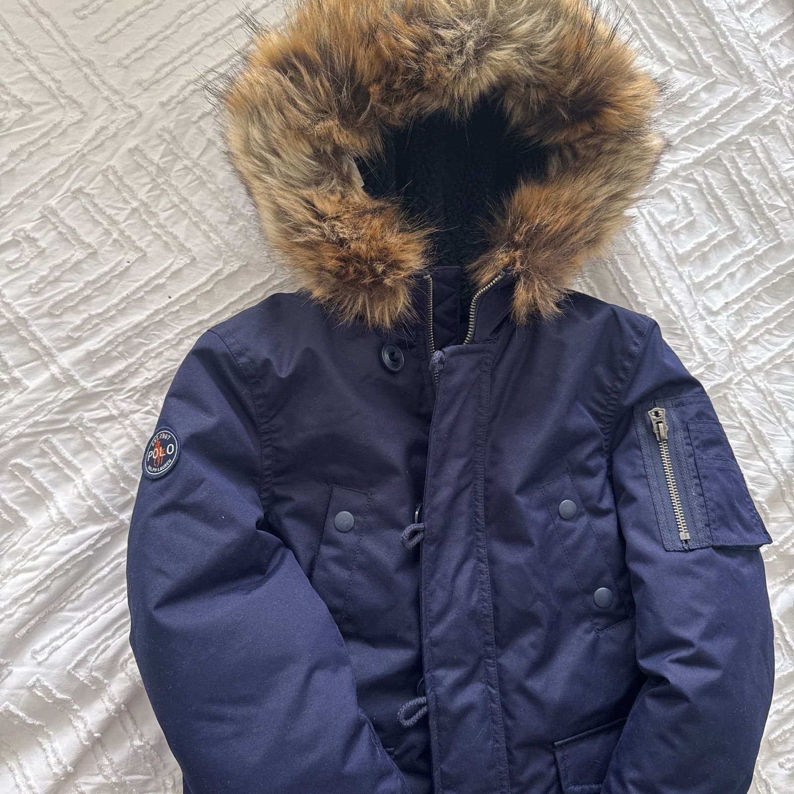 как выглядит Polo Ralph Lauren Boys Water-Resistant Down Parka Newport Navy with Faux Fur Hoo фото