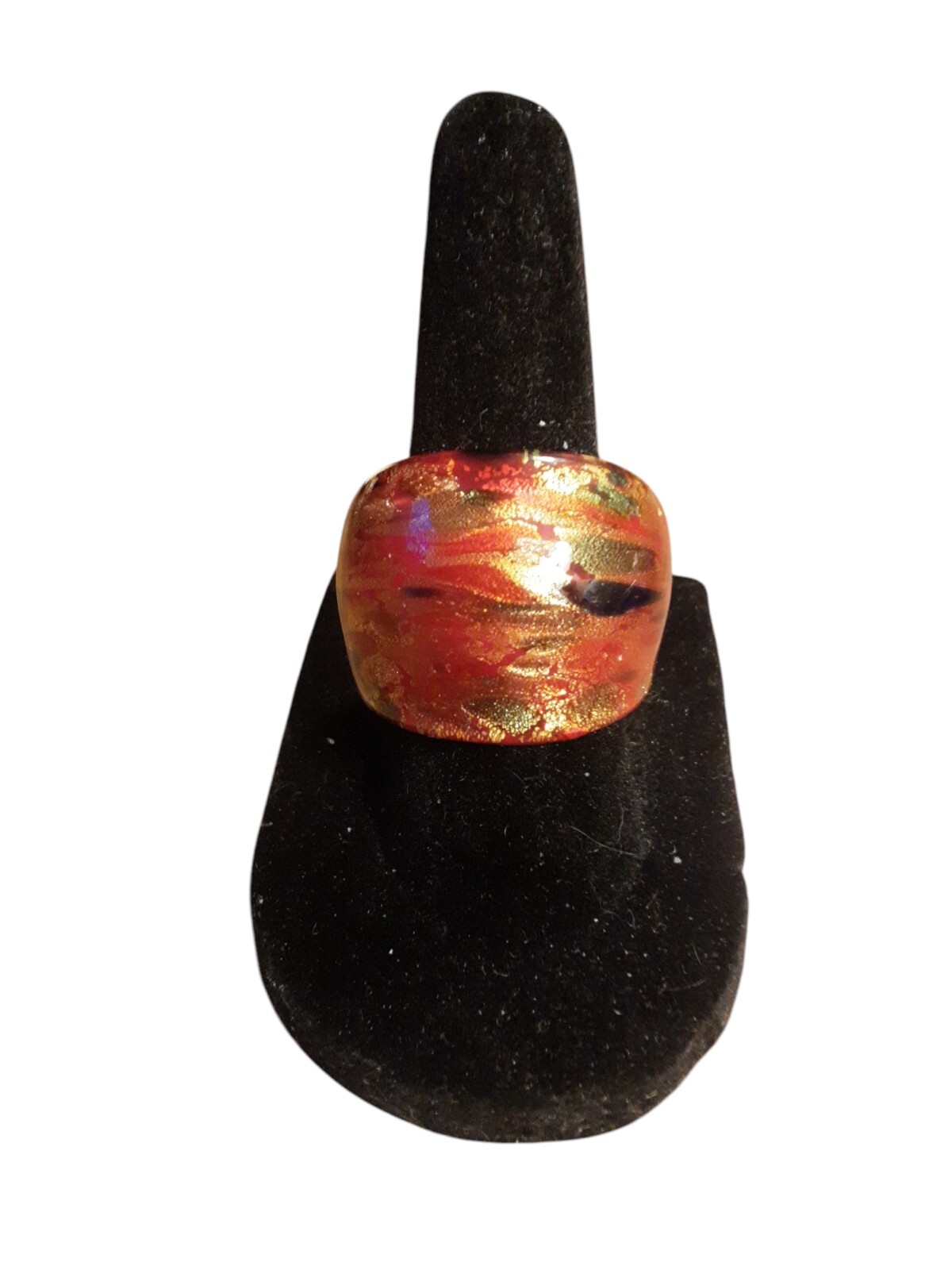 Murano Glass Ring Handcrafted In Italy. A Unique One Of A Kind Jewel. Gold Leaf.