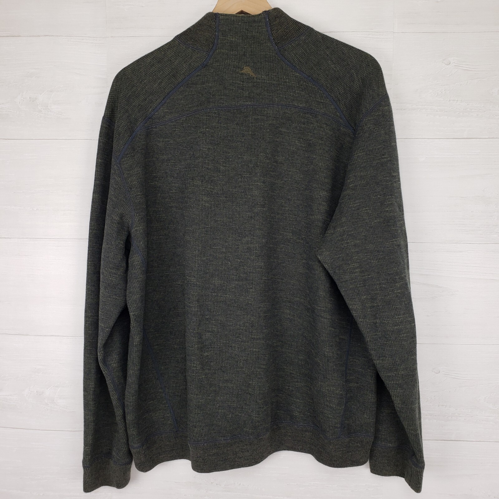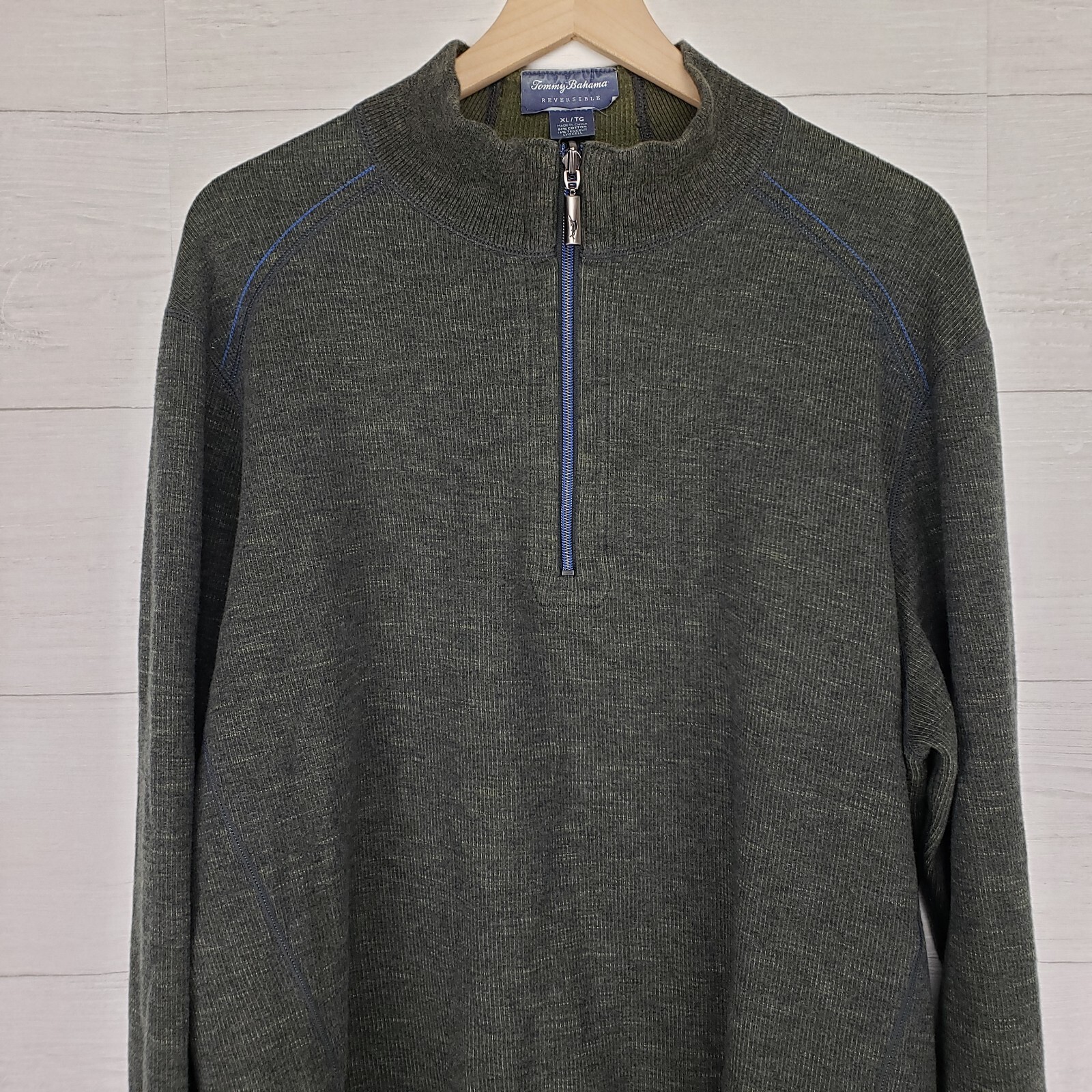 Tommy Bahama Quarter Zip Men's Size XL Reversible Sweater Jacket Gray Green