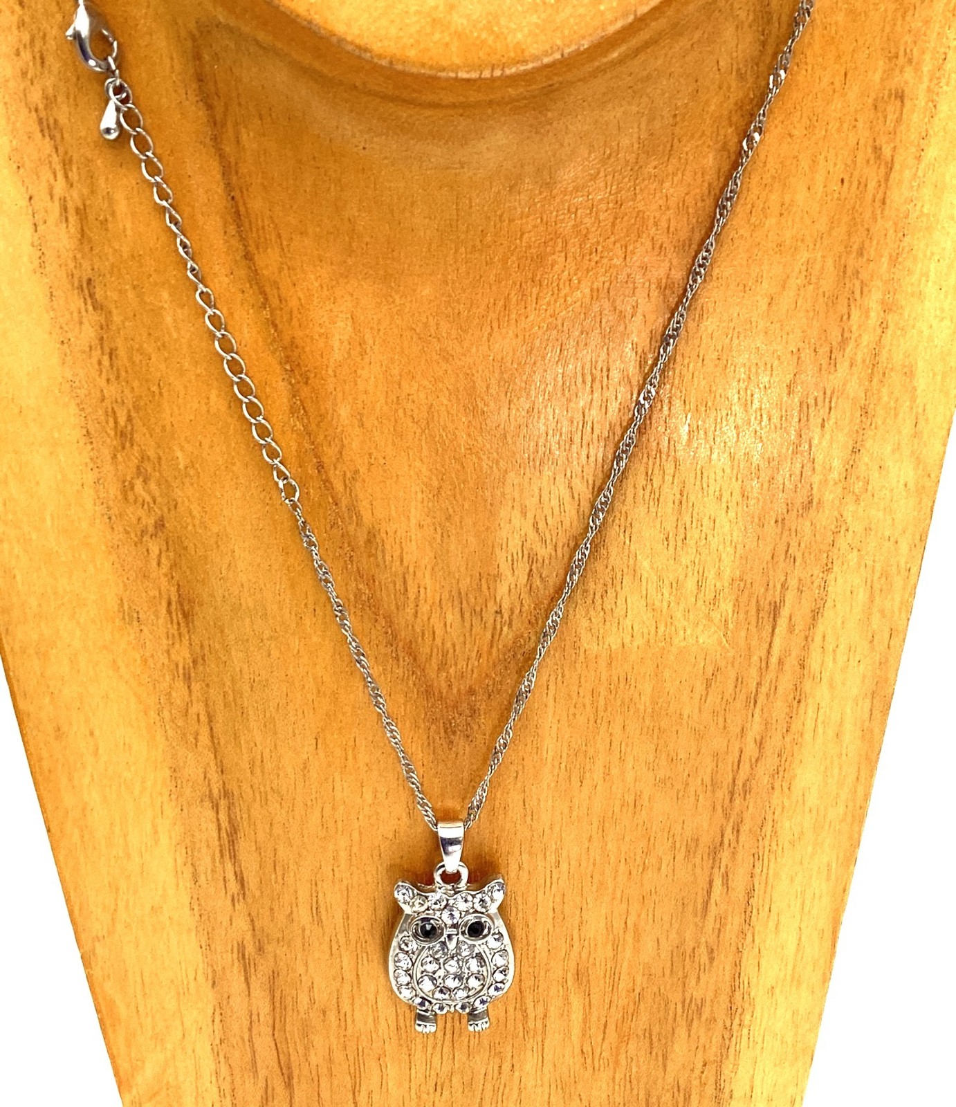 как выглядит 19" Necklace Silver-Tone Owl Pendant With Rhinestones фото