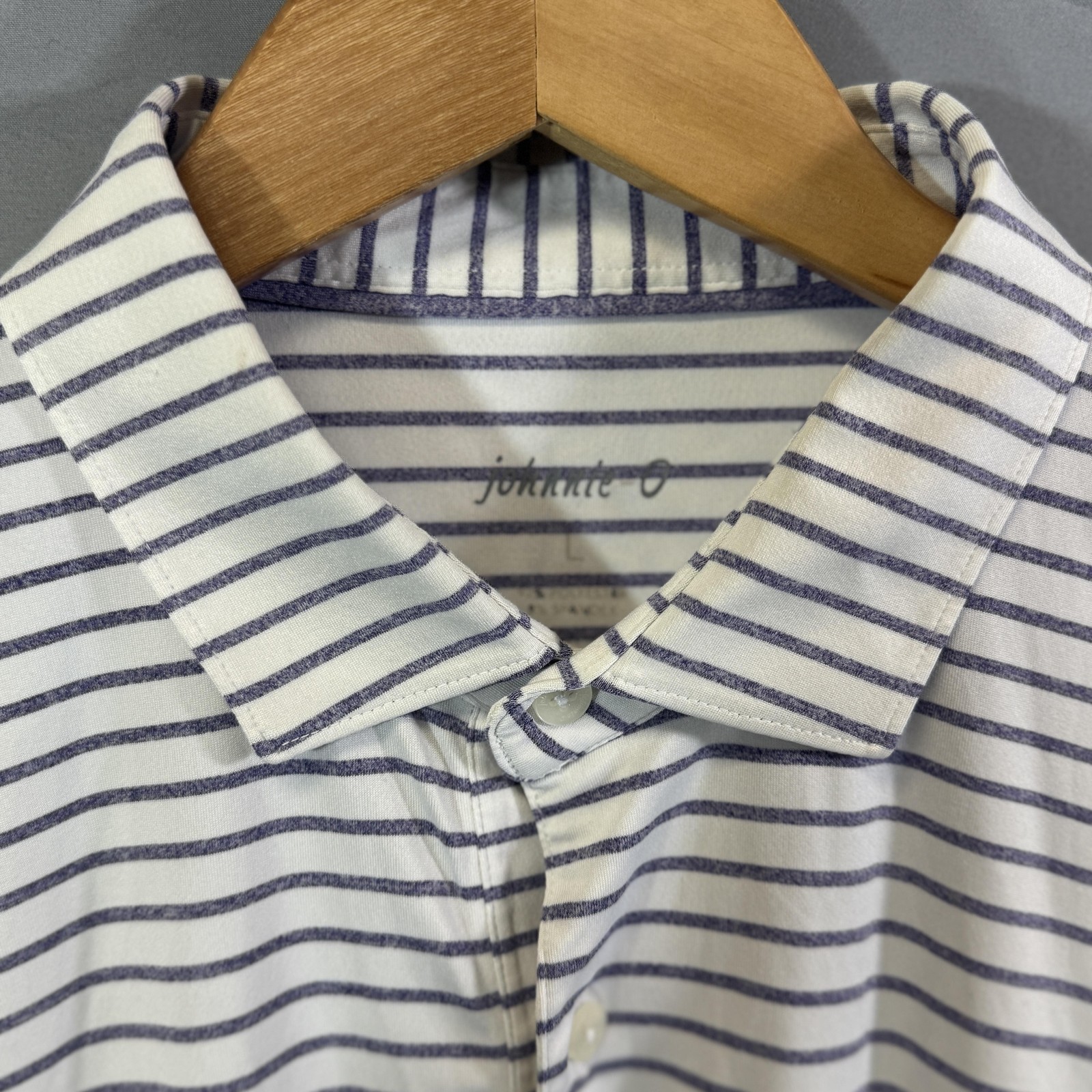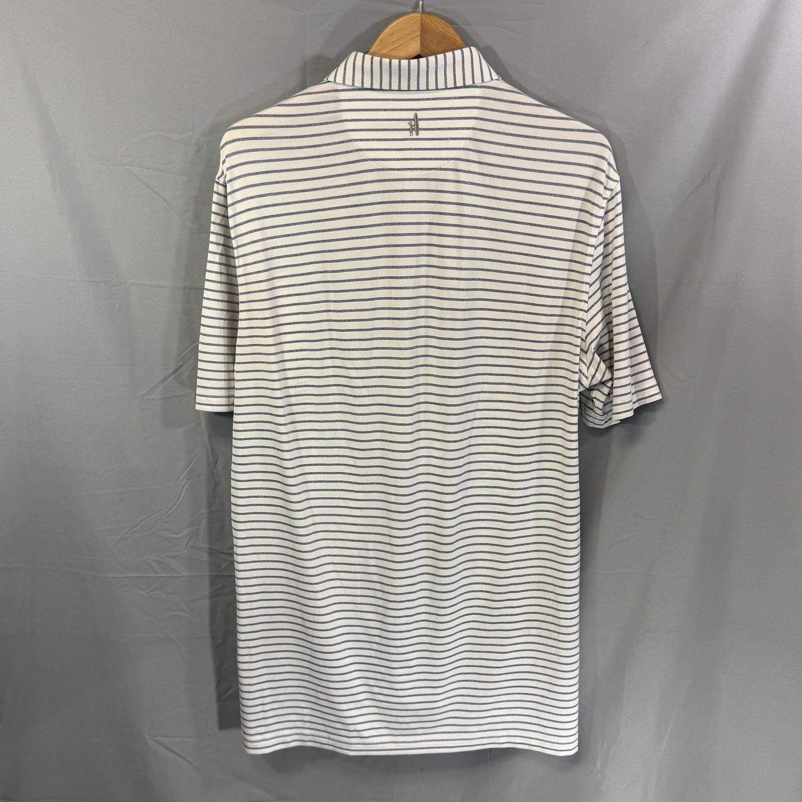 как выглядит Johnnie O Polo Shirt Mens Large White Navy Striped Performance Golf Stretch фото
