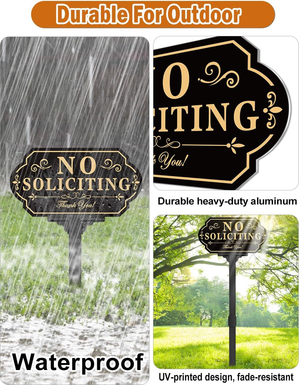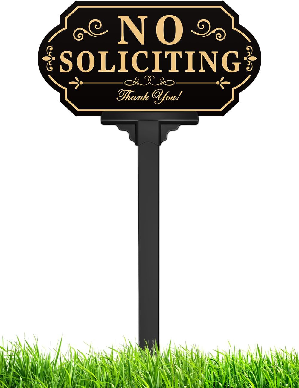 No Soliciting Sign for House with Stake - 50-Mil Thick Aluminum - 5X10 Inch/37 I