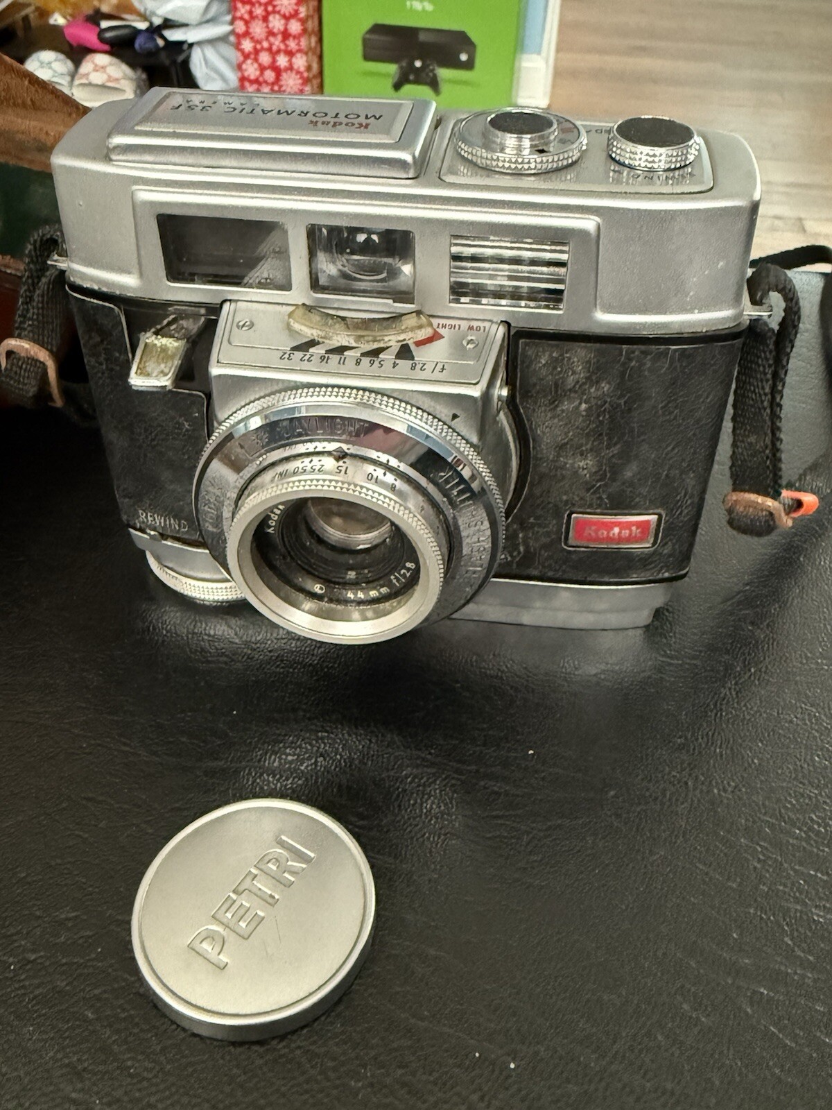 как выглядит Kodak Motormatic 35 F Camera with Lens Original Leather Case, Untested фото