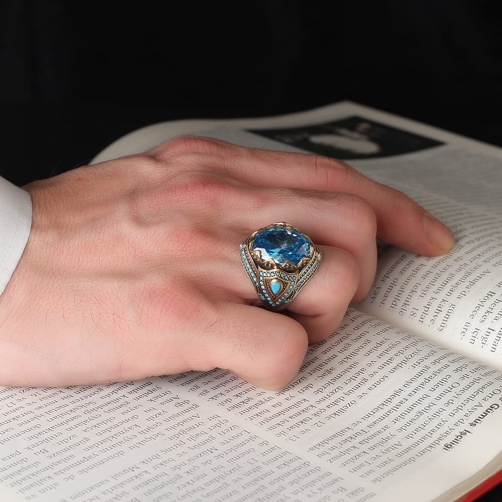 925 Sterling Silver Men's Ring Geniune Blue Topaz Gem Stone Men Silver Ring,